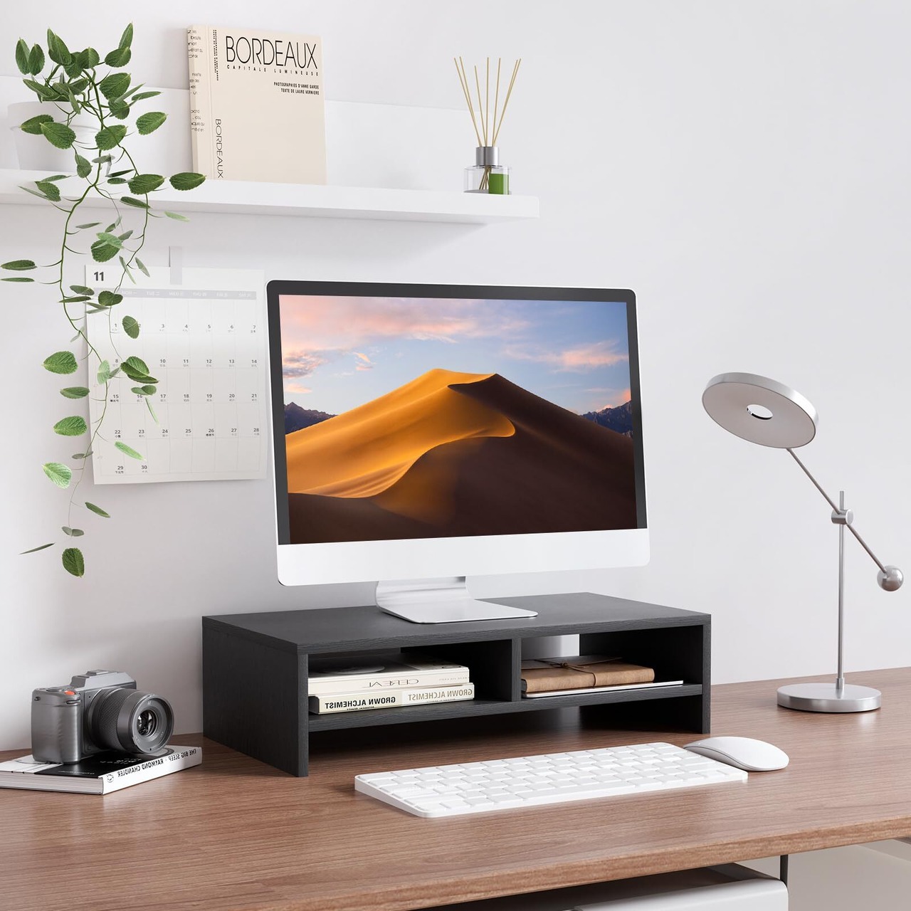 【省スペース&多機能】モニター台は様々な場合に大活躍!本棚やプリンター台/fax台などとしても便利です。キーボードやマウスを収納するには役に立ちます。多機能な机上台で、オフィスや研究室やリビングルームなどの場合もオススメです。画像や鉢植えなどお好きなものを飾れば、自分だけの癒し空間がつくれます。疲れが吹き飛んで作業率もアップさせる。