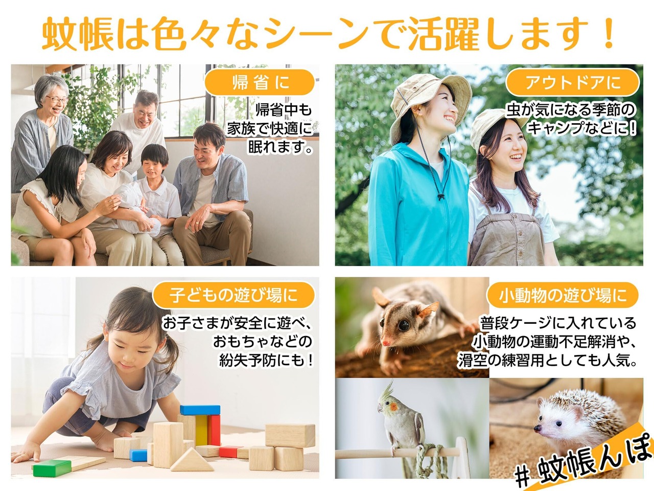 【底生地付き】底面まで360°しっかりとネットで囲われているので、虫を気にしなくて良くなります。蚊帳で体を覆うことで、クーラーの風が直接体に当たらないというメリットもあります。
