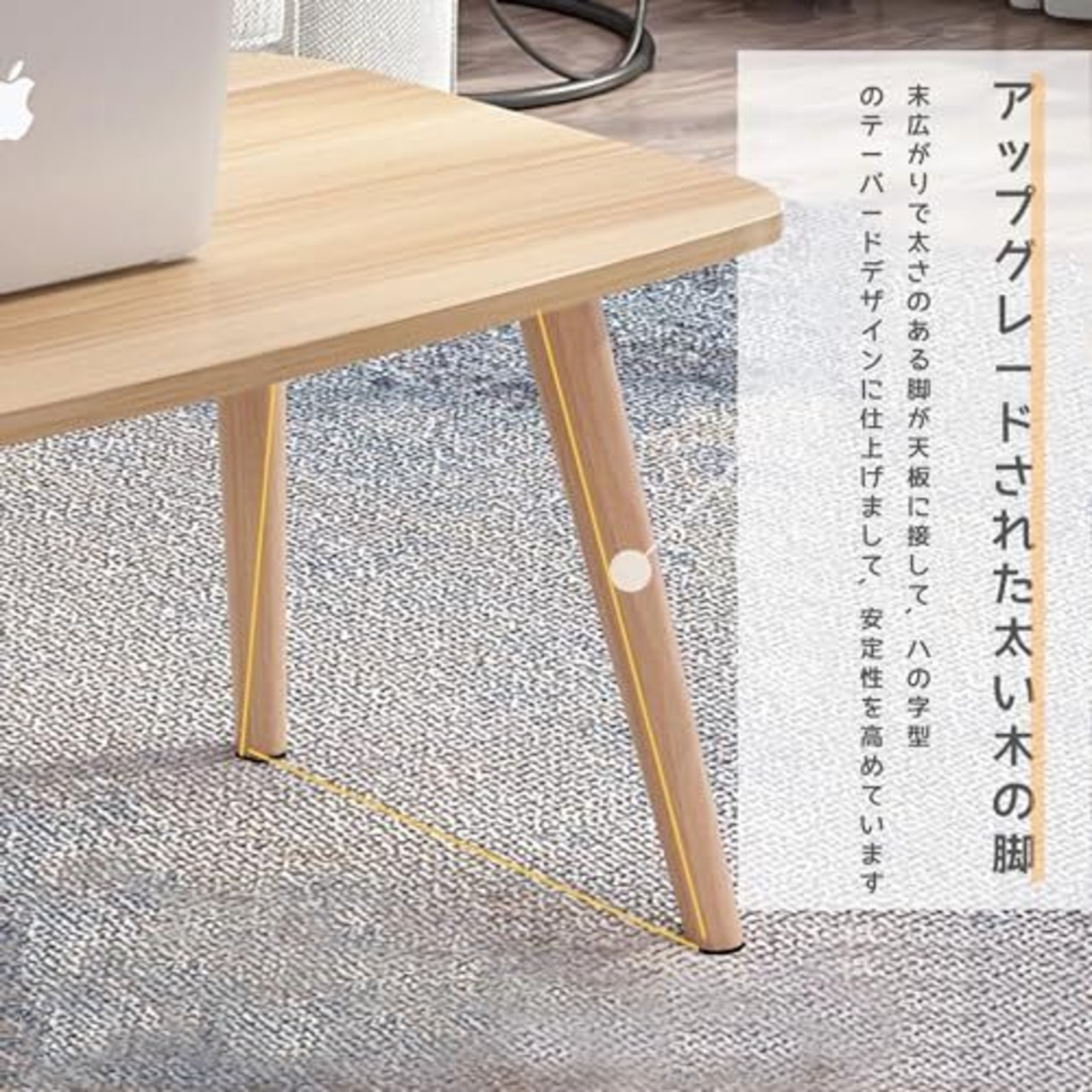 【台形フレームで安定感ある】:末広がりで太さのある脚が天板に接して、ハの字型のテーバードデザインに仕上げまして、耐荷重は40kgとなり、色々なモノを置けてとっても丈夫。脚底には床の保護の為い滑り止めが付いており、効果的に安定性を高められる。