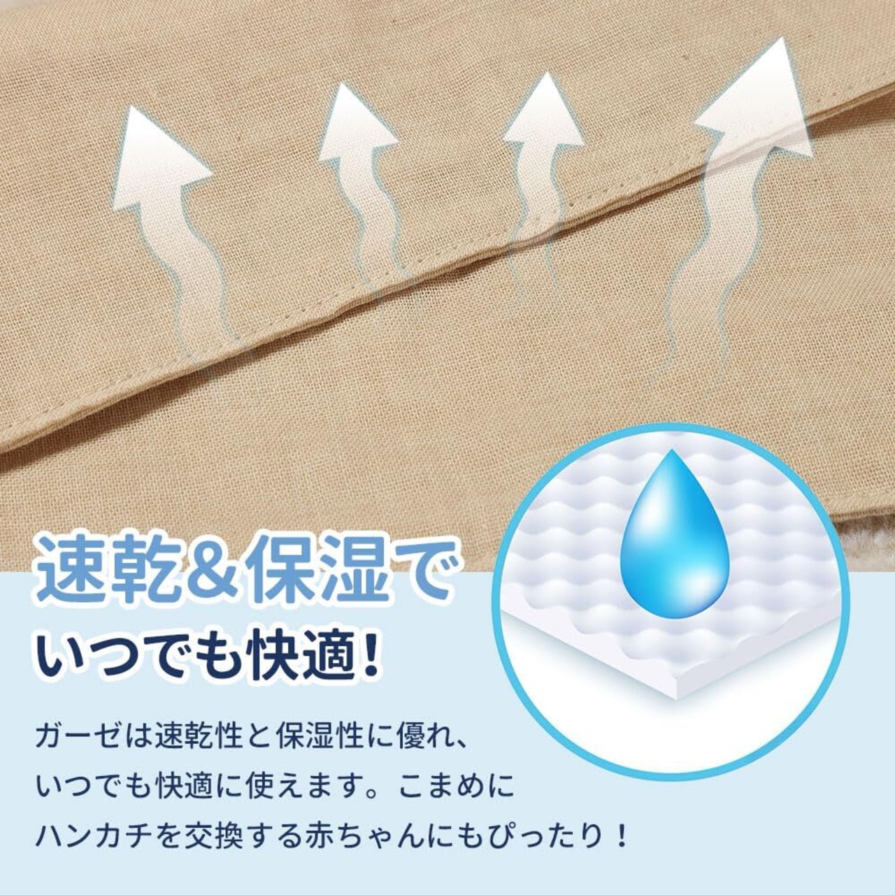 [4倍吸水量]4層ガーゼでさっと水分を吸収し、速乾性もよくいつでも気持ちよくお使い頂けます!