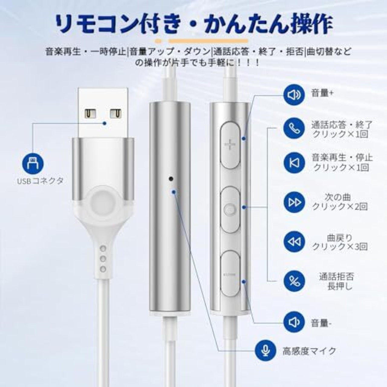 イヤホン マイク USB 有線 ヘッドセット 【2.3m】 マイク付きイヤホン 通話可能 音量調節 HIFI音質 テレワーク WEB会議 Zoom パソコン用 ゲーミング USB-A ポート搭載のデスクトップ、コンピュータ、PC、ラップトップなどに対応