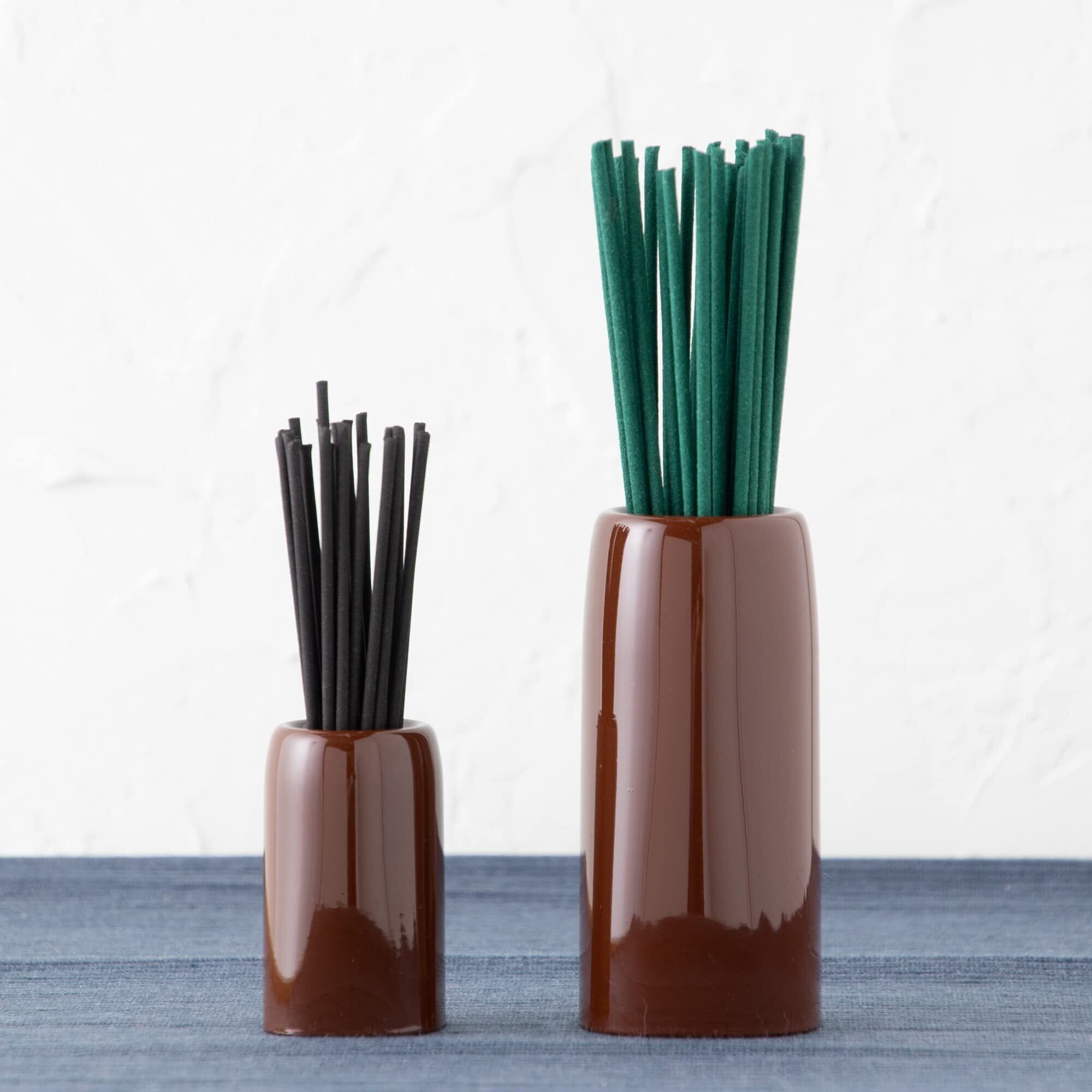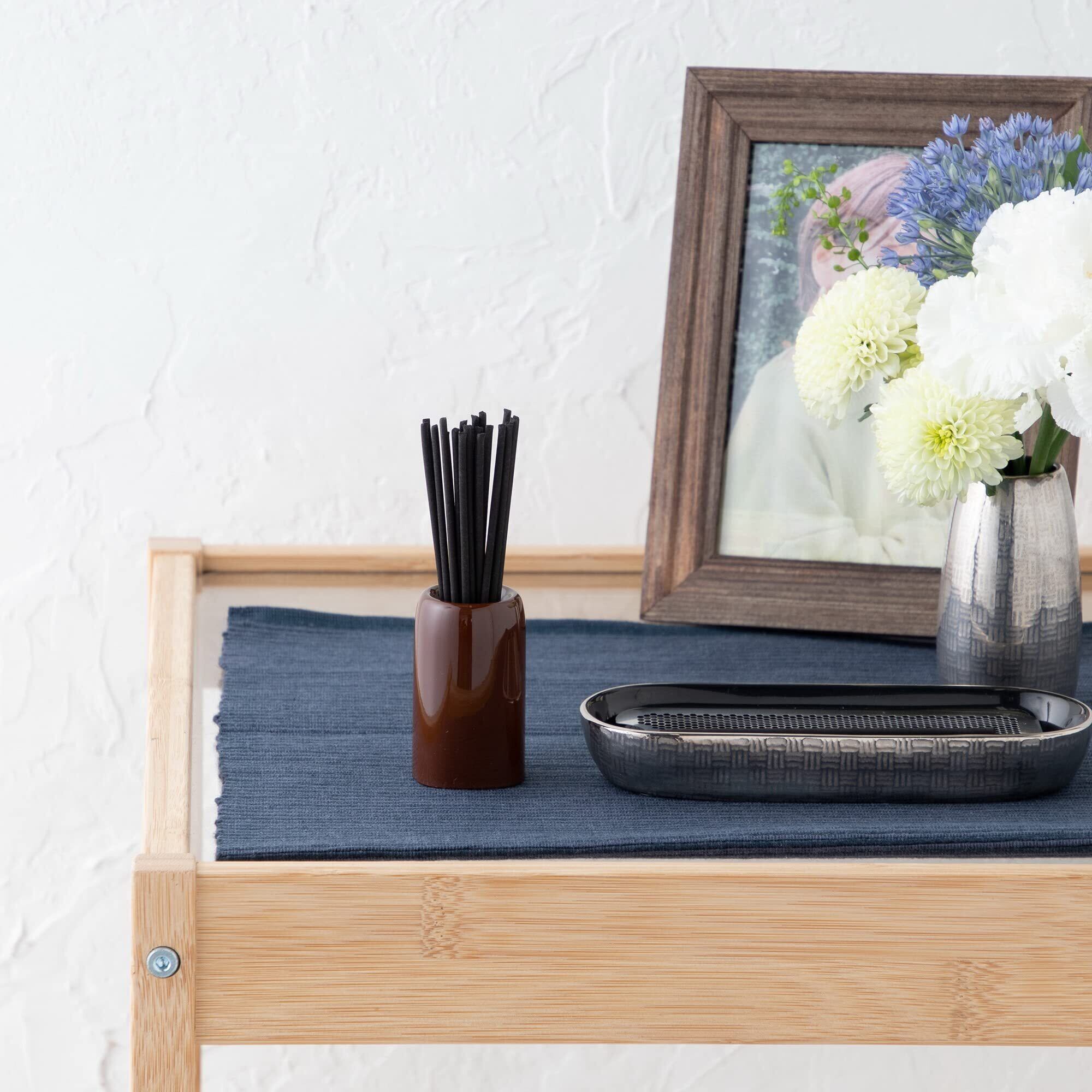 サイズが2種類あるため、使いたいお香に応じてサイズをお選びいただけます。コンパクトかつ落ち着いたシンプルなデザイン、色のため、リビングやミニ仏壇、ステージ仏壇などはもちろん、ヨガや瞑想の時に使うお香を、インセンスホルダーの近くにまとめておくなどの用途にもご使用いただけます。
