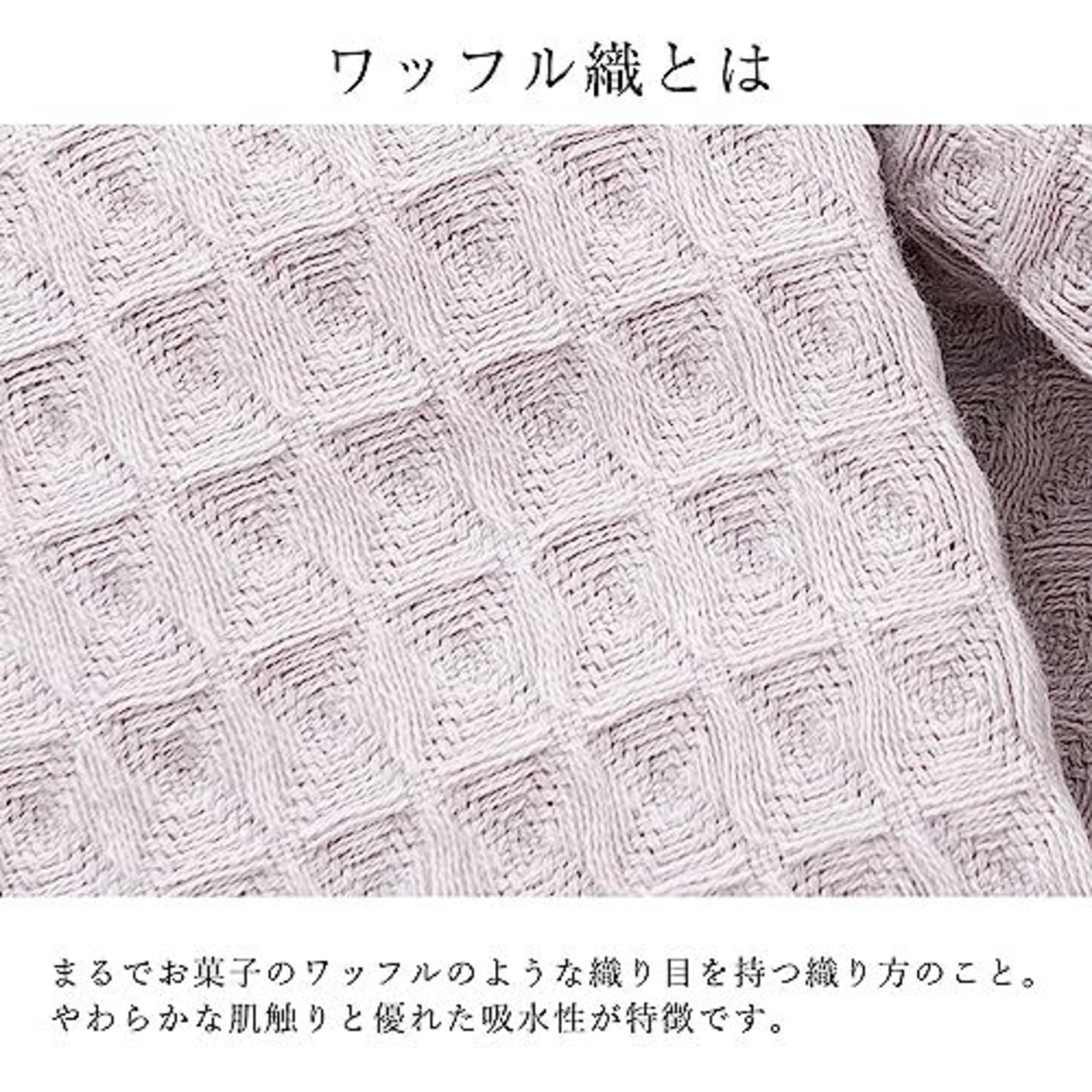 【商品のご注意点】ワッフル生地はその特性上、洗濯後の伸縮が起こりやすくなっております。干す前にはタオルの端を引っ張り、形を整えてから干していただくことで本来の形が長持ちします。