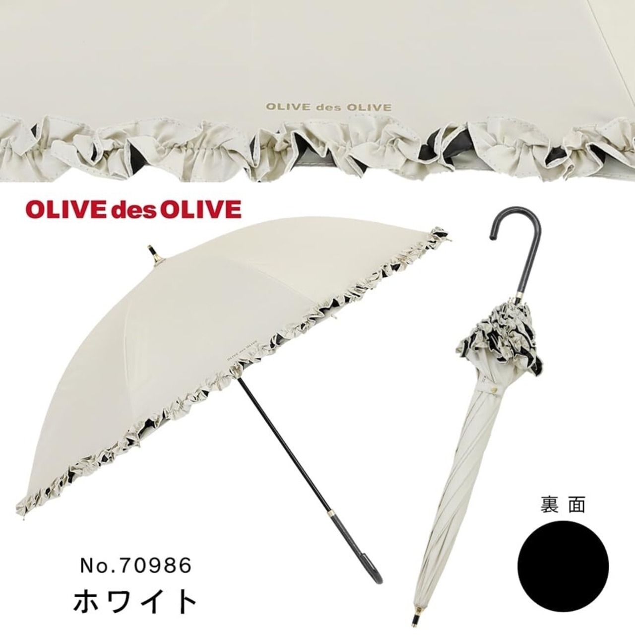 小川(Ogawa) 日傘 OLIVE des OLIVE レディース フリル ホワイト 晴雨兼用 完全遮光 UV99.9%カット 遮熱 70986