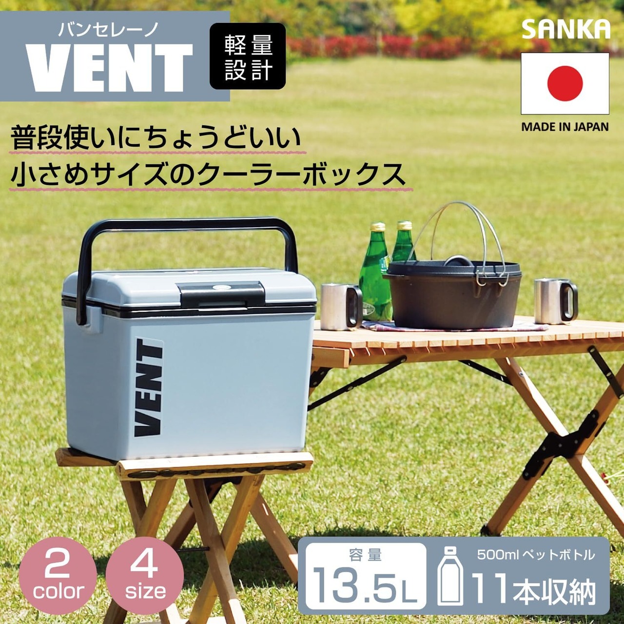 サンカ バンセレーノ ワンプッシュで開閉できる クーラーボックス アッシュブルー(マット仕様) 13.5L 軽量設計 ふたが外せてお手入れ簡単 日本製 フィッシングクーラー 釣り キャンプ 部活 (幅37.5×奥行27×高さ28cm) SVES-#14BL