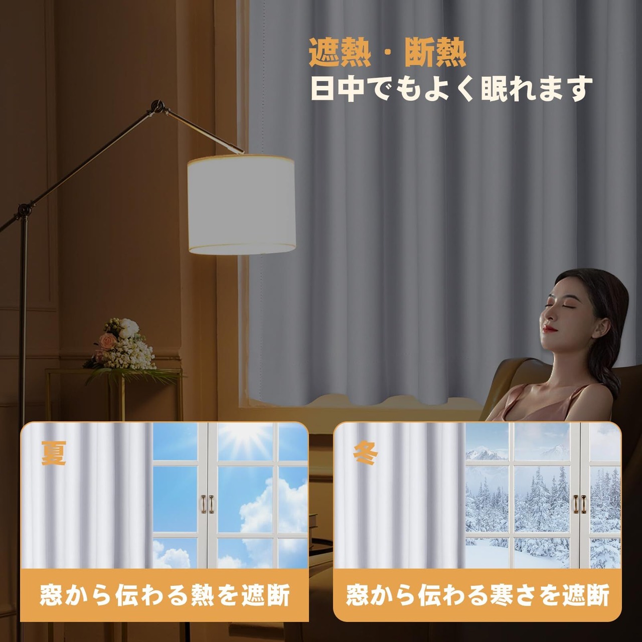 【取付方法】両端の直径2.0cm以下の突っ張り棒が使用可能です。*別途対応可能な突っ張り棒をご用意ください。ご注意:同じ等級であっても、カーテンの明度や色彩によって遮光の度合いが変わります。薄い淡い色は光を通しやすく、濃い暗い色は光を通しにくいです。遮光性を重視される方は濃色をおすすめします。