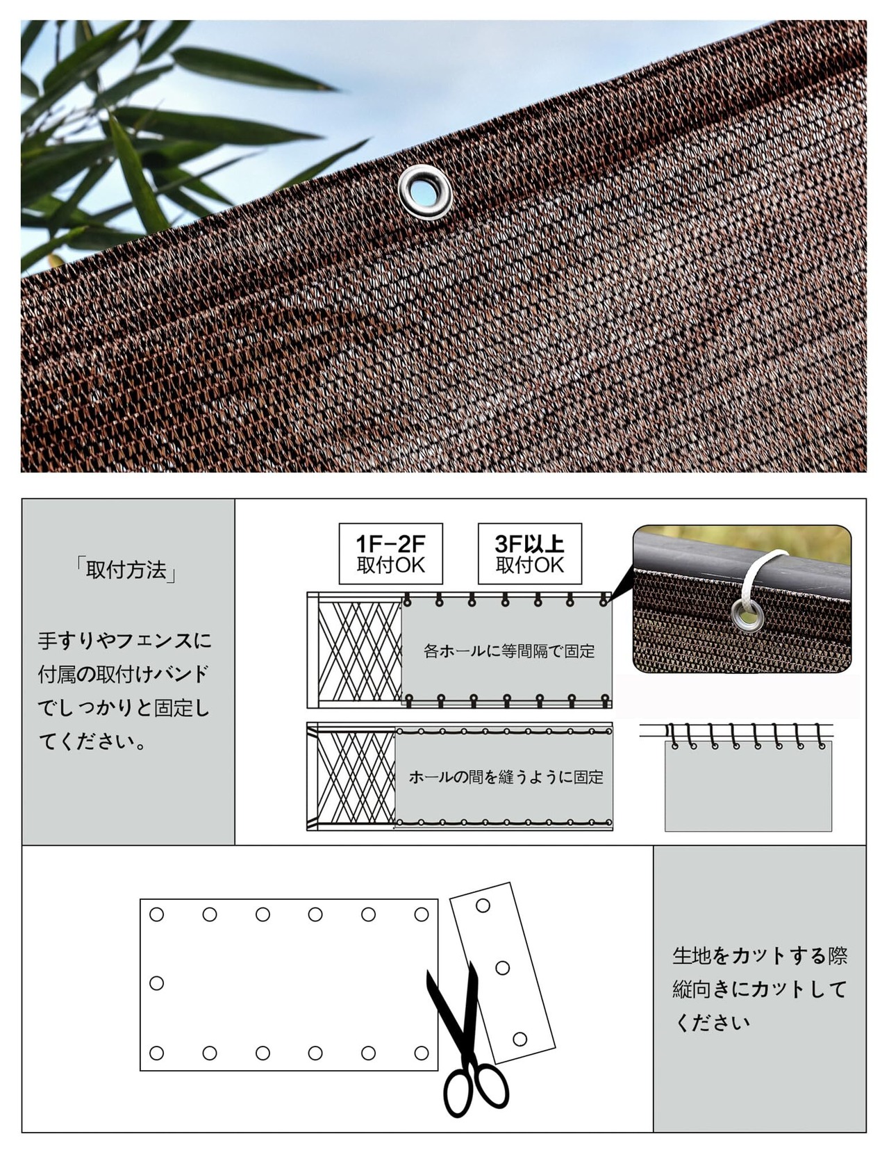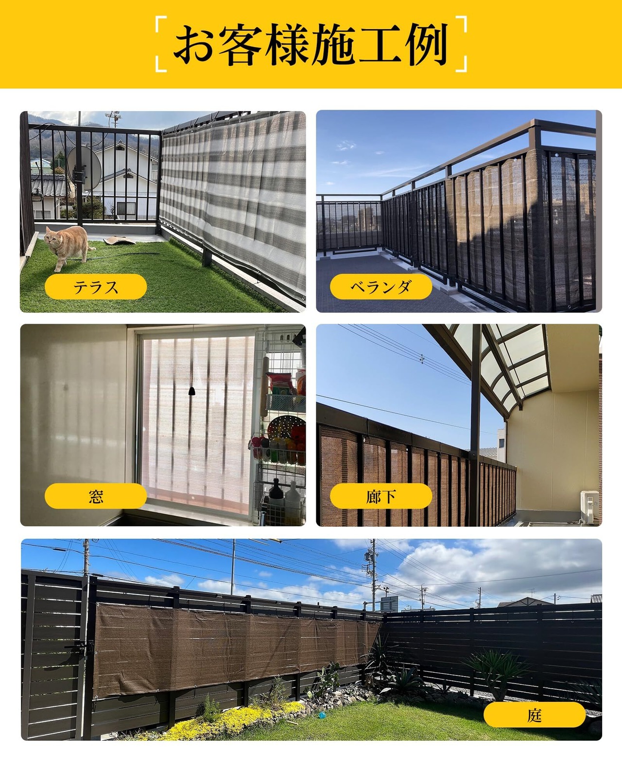 手軽に設置できる、ベランダの柵やお庭のフェンスなどにちょうどいいサイズで、長すぎる場合はハサミで簡単に切断して使うことができます。付属品:12mx1本取付けひも、リピートタイプ結束バンド 30cm*24本。