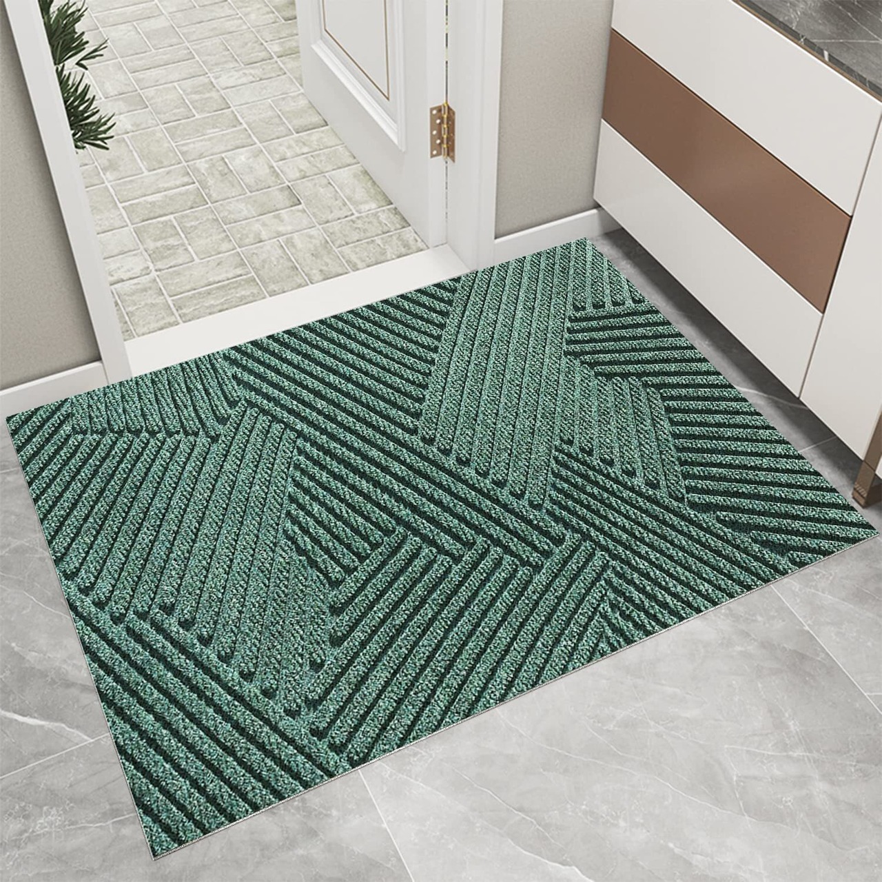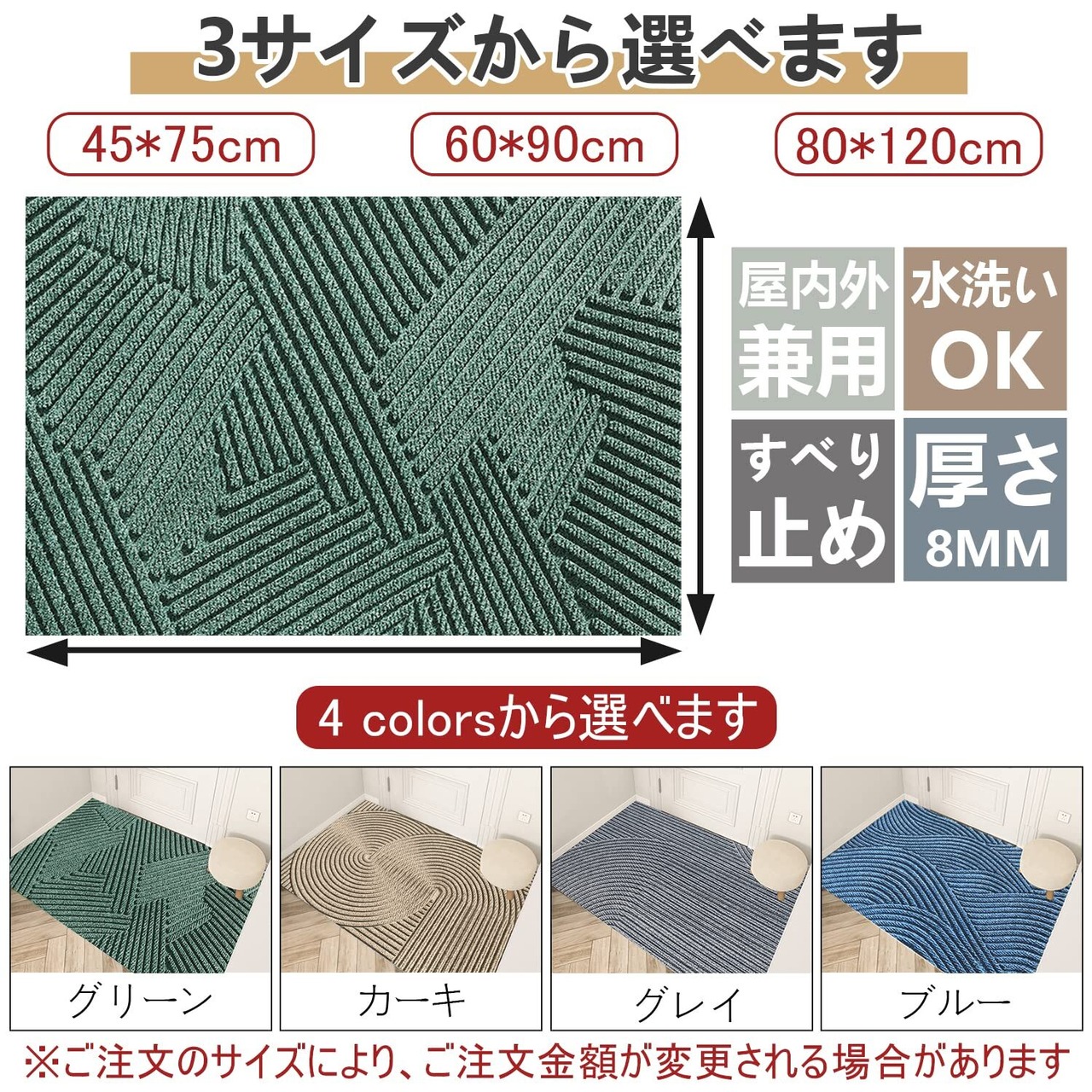 玄関マット 北欧 室内 屋外 泥 砂落とし 水や日差しに強く お手入れ簡単 水洗い pvc 玄関 マット 風水 おしゃれ 玄関外マット 店舗用玄関マット業務用玄関マット 滑り止め付き 足拭きマット 約60×90cm グリーン