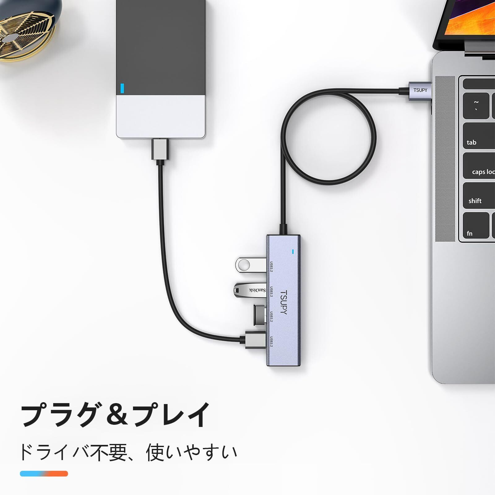 10Gbps USB3.2ハブ5ポート,TSUPY USB 3.2 Gen 2 ハブ 120cm延長ケーブル アルミ製 USB-A 3.2*4 ポート拡張 usb増設 セルフパワーとバスパワー両用 スリム コンパクト Windows/Mac/ChromeBook/iPad Pro/MacBook/Switch他対応usb3.2 hub 【2024新型】