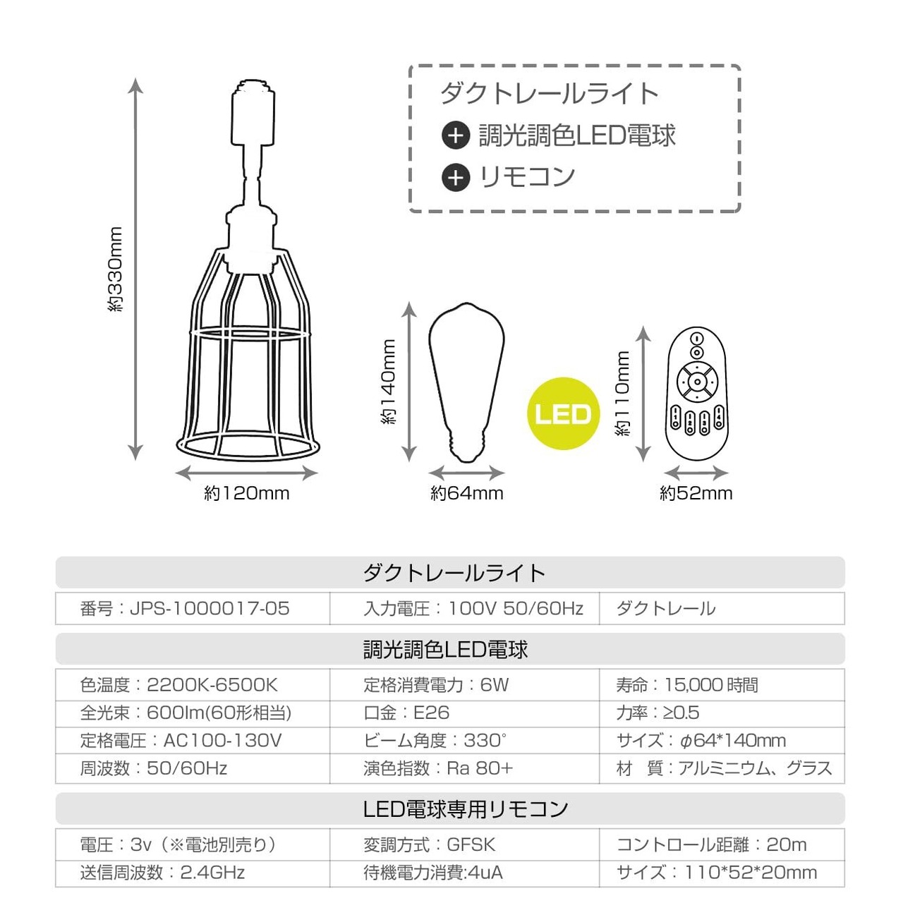 【器具+LED電球】器具はE26口金、可動範囲は上下約90度、回転約350度です。 LED電球は600LM(調光可能) 、色温度2200-6500Kです。寿命:15,000時間。パッケージ:1個セット+リモコン(電池別売り、物流の安全を確保するために、当社のリモコンには電池が含まれていません。)