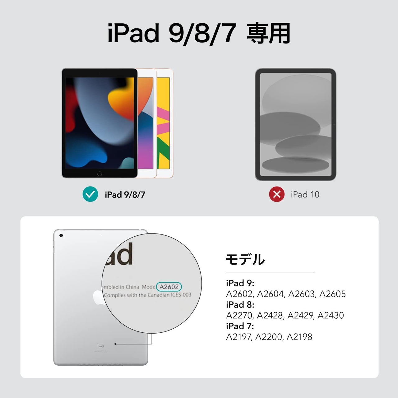 【対応機種】10.2インチのiPad 9/8/7世代(2021&2020&2019モデル)通用です。モデル番号: A2270, A2428, A2429, A2430, A2197, A2200, A2198。 注意: 10.2インチ以外のどのiPadモデルにも対応しておりません。