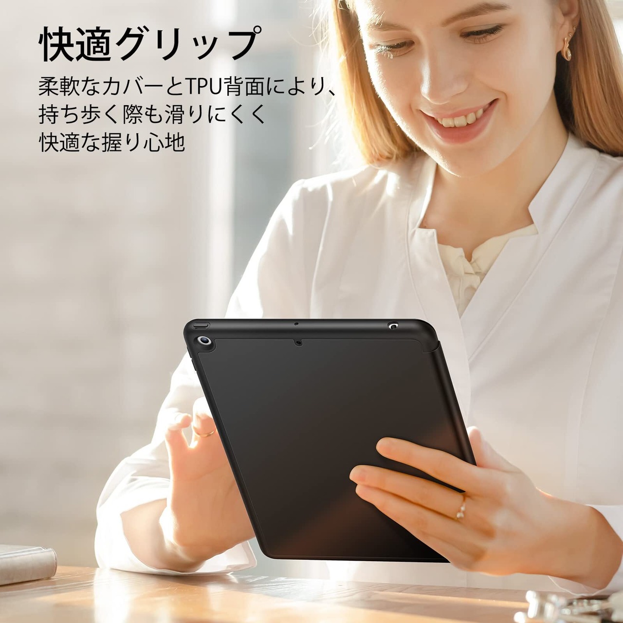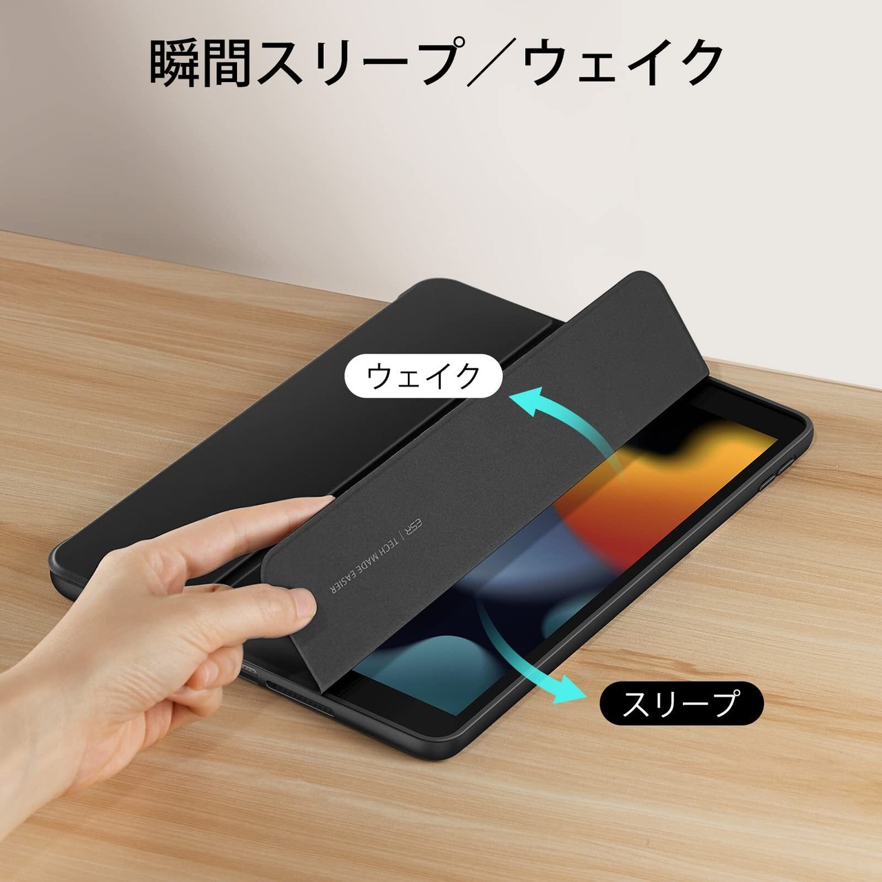 ESR iPad 9世代 ケース 10.2インチ 第9/8/7世代通用(2021/2020/2019年) スリムな三つ折りスタンドケース ペンシルホルダー付き Pencil 2 対応 自動ウェイク/スリープ 柔軟 耐久性保護 Reboundシリーズ ブラック