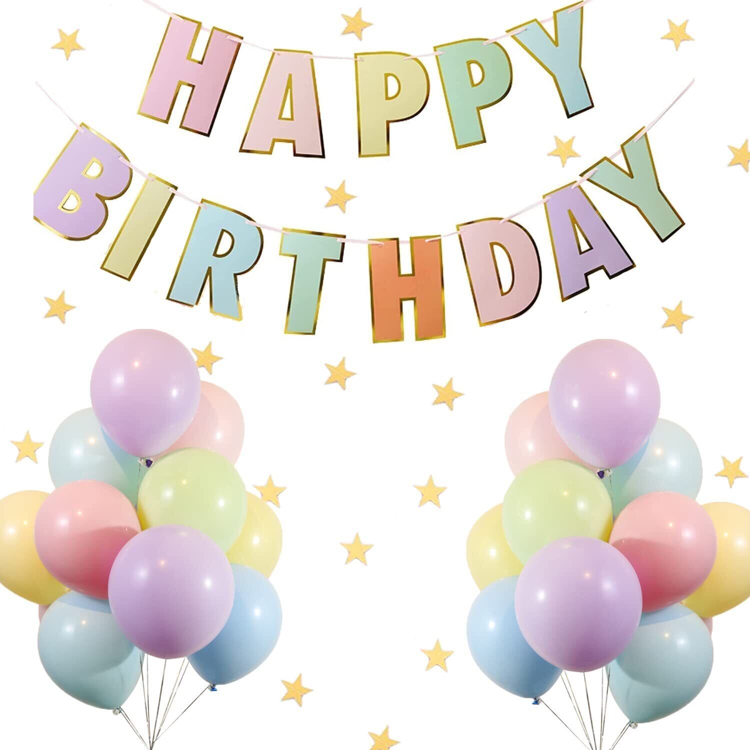 【セット内容】バースデーガーランド×1、スターガーランド×1、マカロンバルーン×30