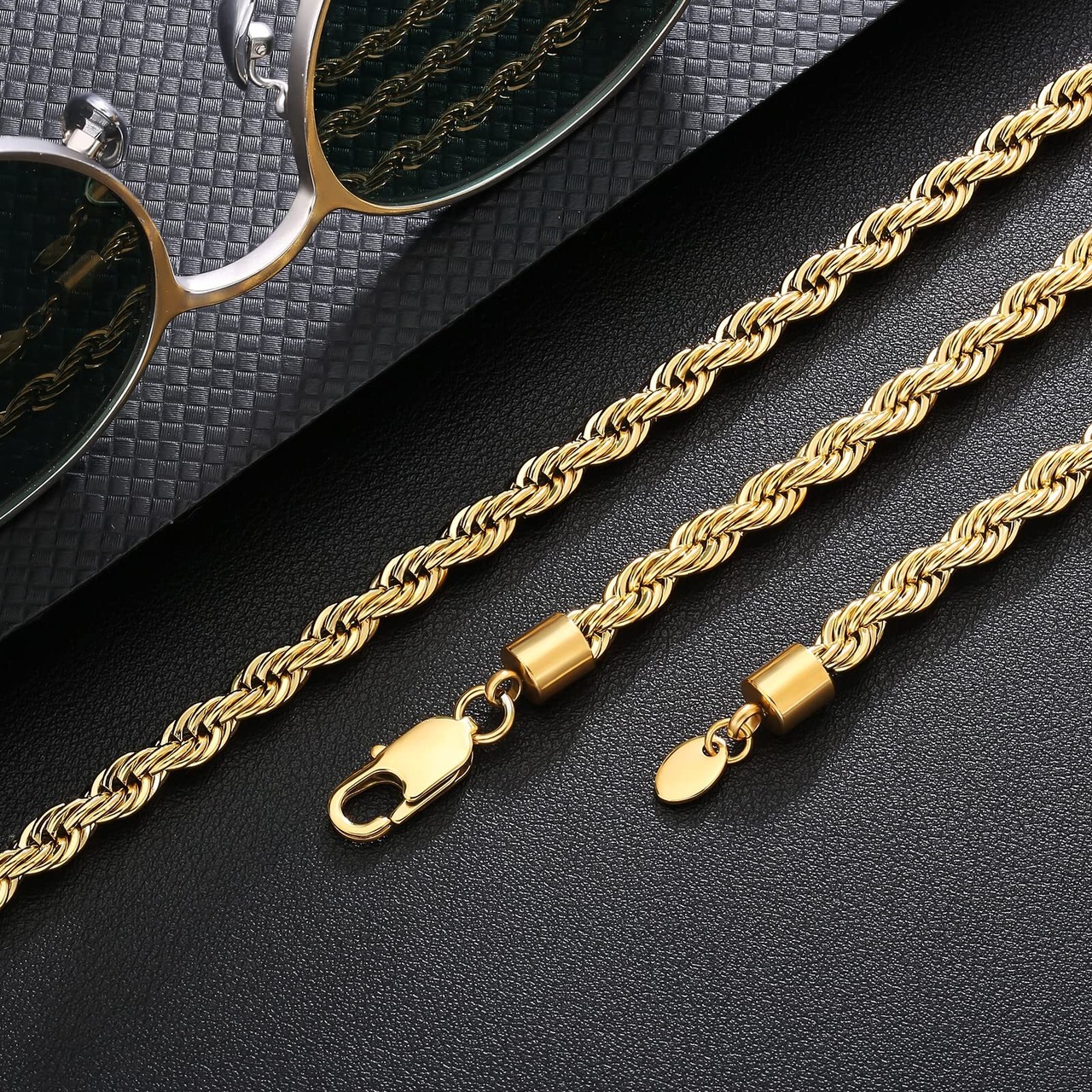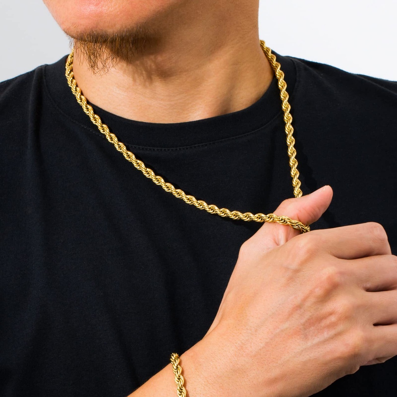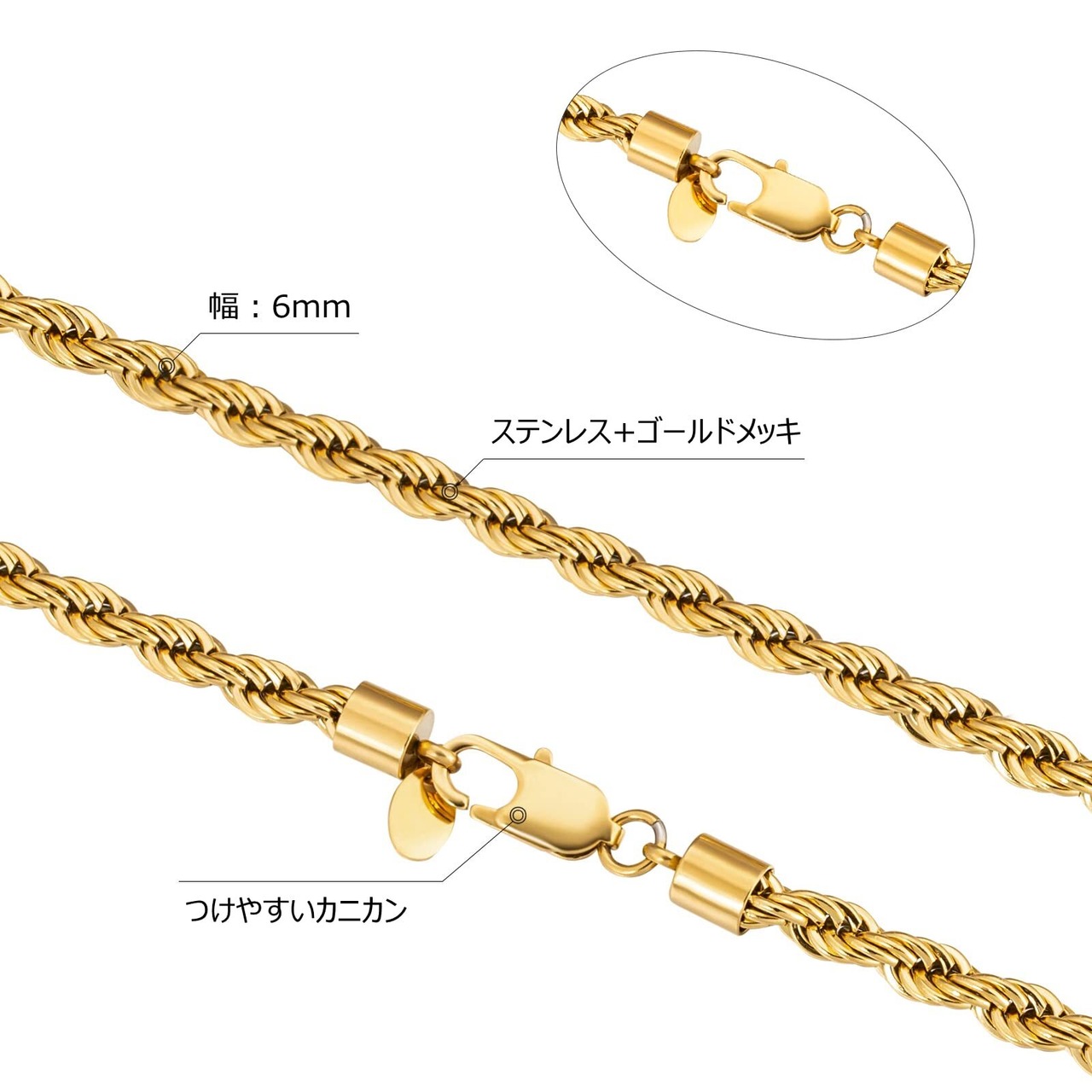 KRKC&CO フレンチロープチェーン 幅6mm メンズ チェーンネックレス ステンレス 金メッキ ネックレスチェーンのみ ハワイアンジュエリー シンプル 男女兼用 アクセサリー 46/51/61cm (ゴールド, 51)