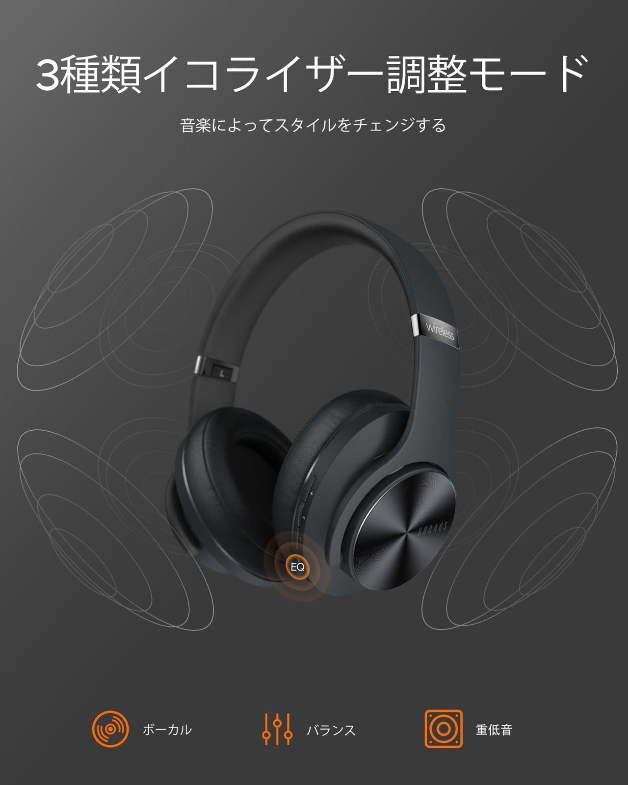 DOQAUS(ドカアス) ヘッドホン Bluetooth5.3 ワイヤレスヘッドホン 最大80時間連続再生 3EQサウンドモード オーバーイヤーヘッドホン マイク内蔵 有線対応 密閉型 メモリーフォーム 耳に優しい 携帯・パソコン・ウォークマン対応 LIFE3 (ブラック)