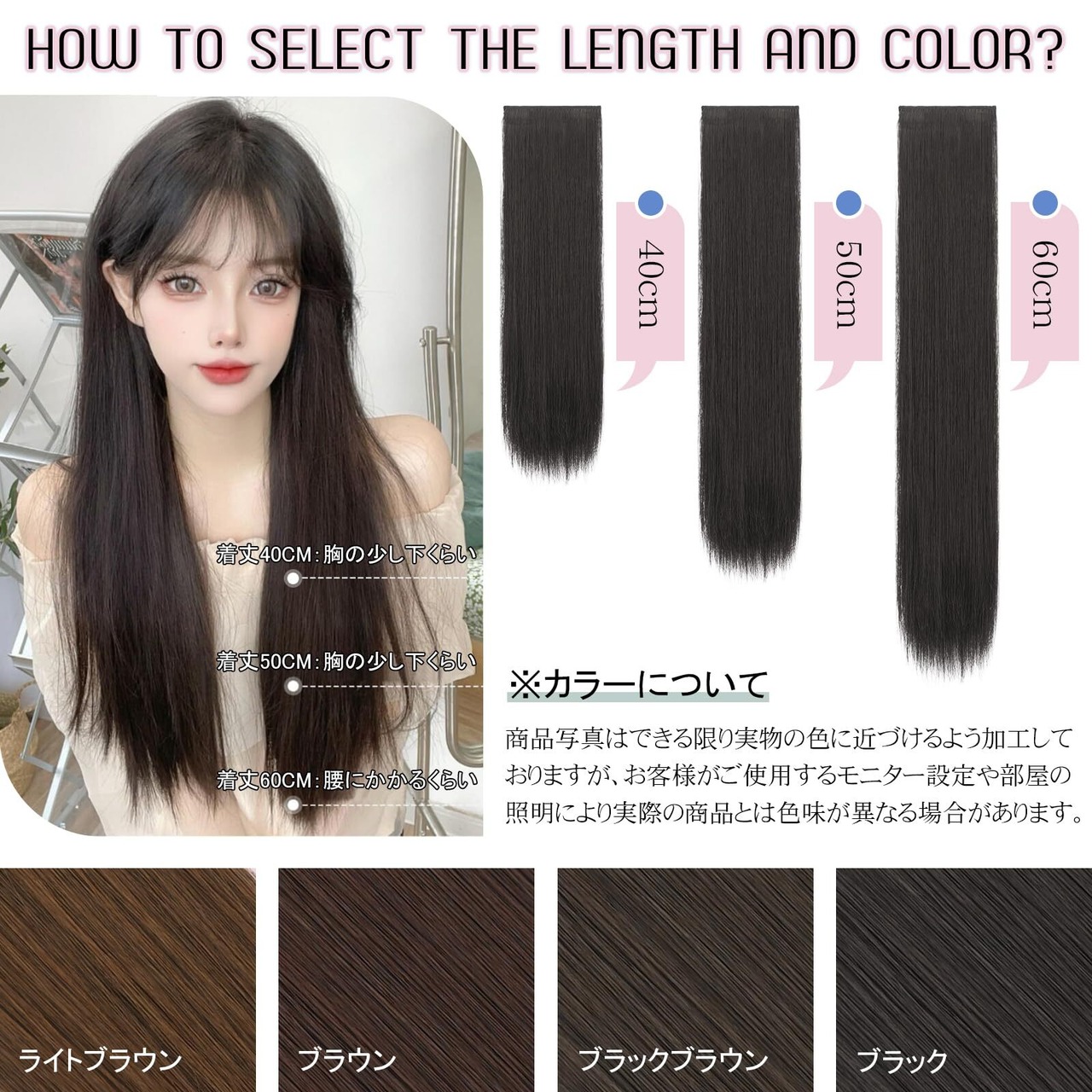 FESHFEN 襟足ウィッグ 3枚セット ロング ストレート エクステ ワンタッチエクステ 襟足エクステ ワンタッチ ポイントウィッグ エクステンション ウィッグ ハーフウィッグ つけ毛 付け毛 日常 ファッション 耐熱 クリップ付け 60cm ブラックブラウン