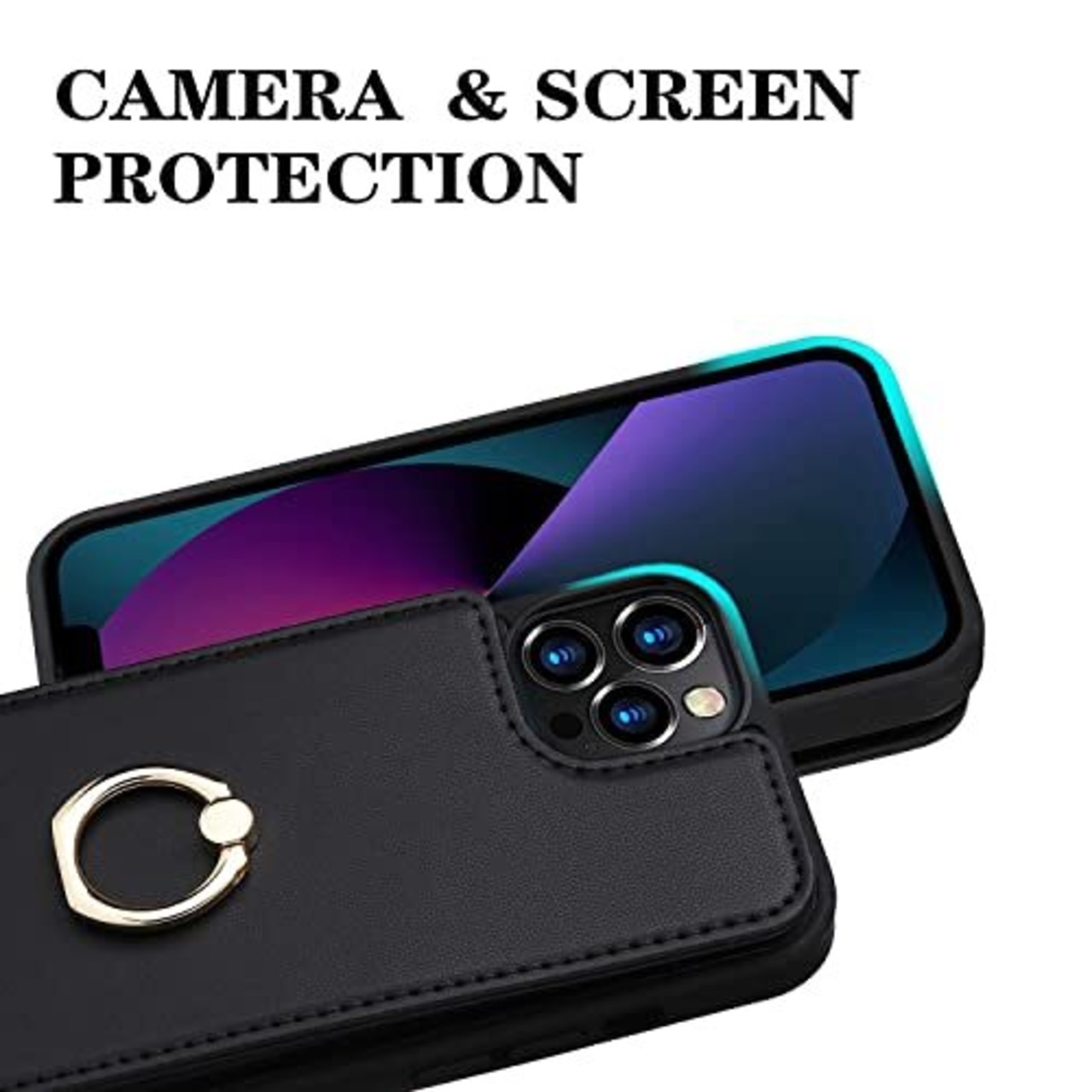 【J.DL直営店】iPhone 13Pro Max ケース 財布型 iPhone13proMax手帳型 ケース おしゃれ 13proMaxケース iphone13proMax case カード収納 レザーケース [スキミング防止] アイフォン13 プロ Max ケース 背面カード 360°回転リング スタンド機能 手触りが良い 女性用 人気 上質 ブラック