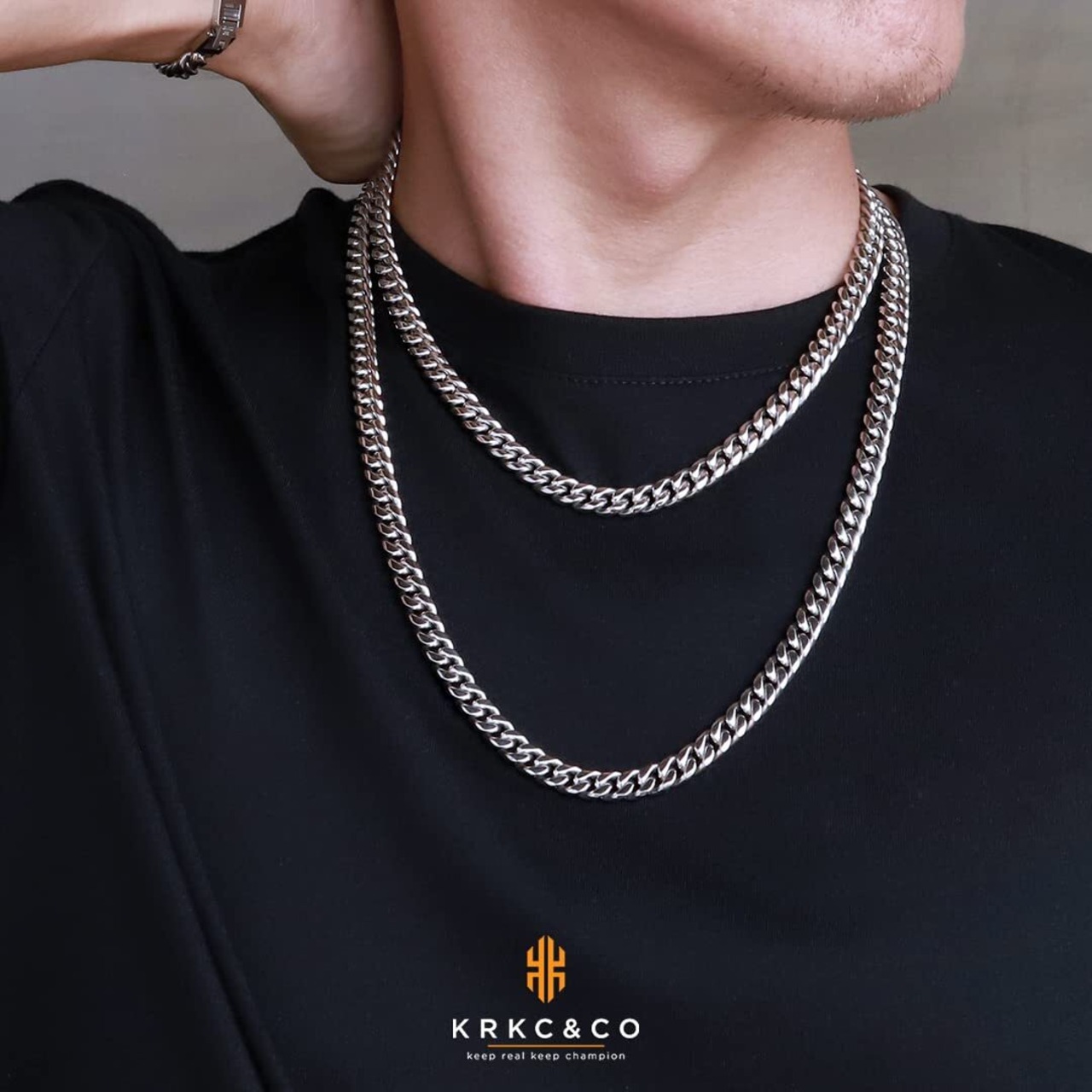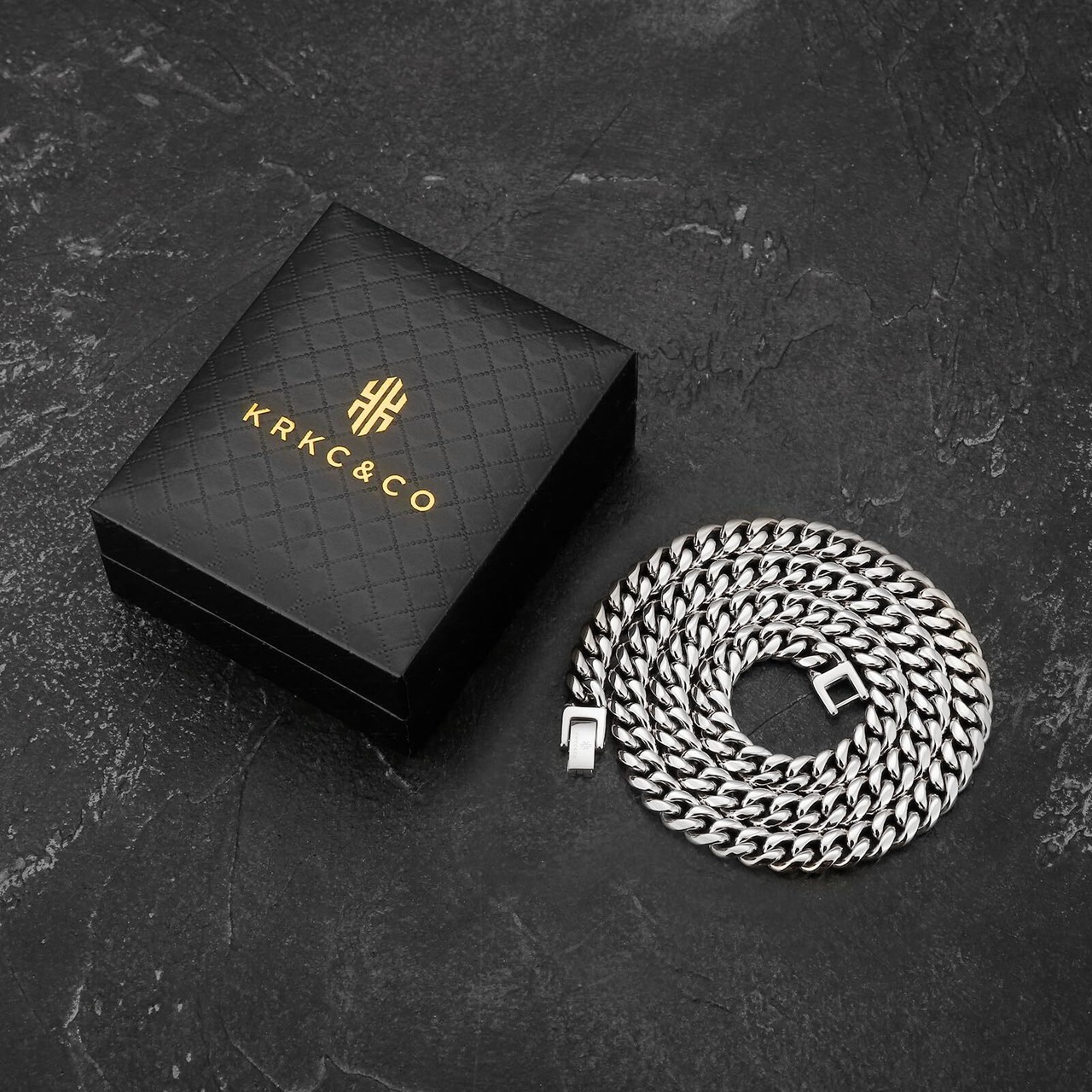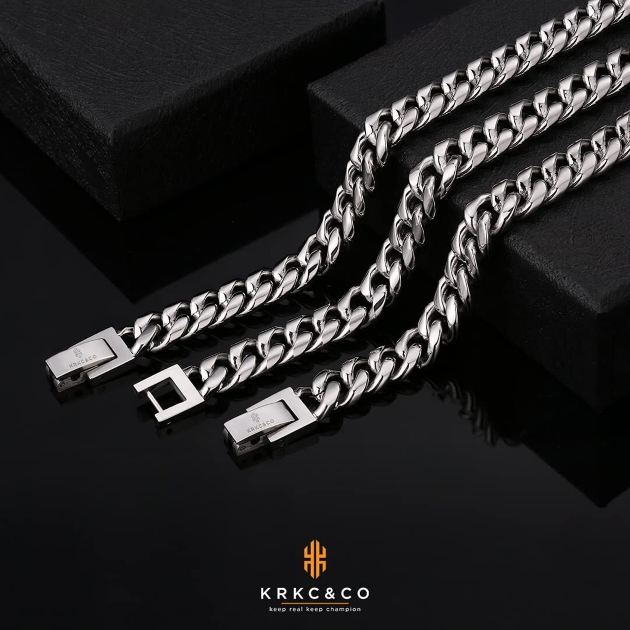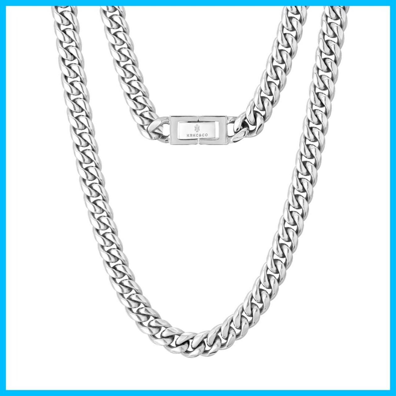 KRKC&CO 喜平ネックレス メンズ マイアミキューバンチェーン 幅8mm ステンレス k18メッキ 4面カット ヒップホップ ラッパー B系アクセサリー ギフト プレゼント金属アレルギー対応 (シルバー, 56cm)