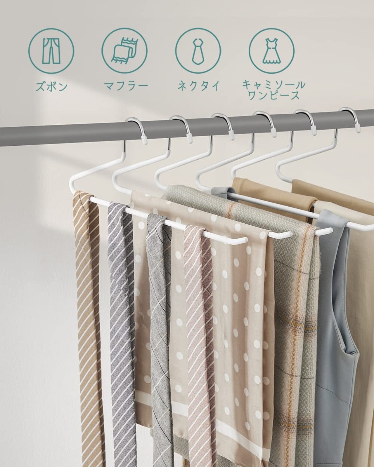 SONGMICS ハンガー ズボン 20本 スラックスハンガー すべらない 洗濯物干し 頑丈 デニム適用 省ペース スリム 跡がつかない パンツスカート ストール ホワイト CRI004WT20