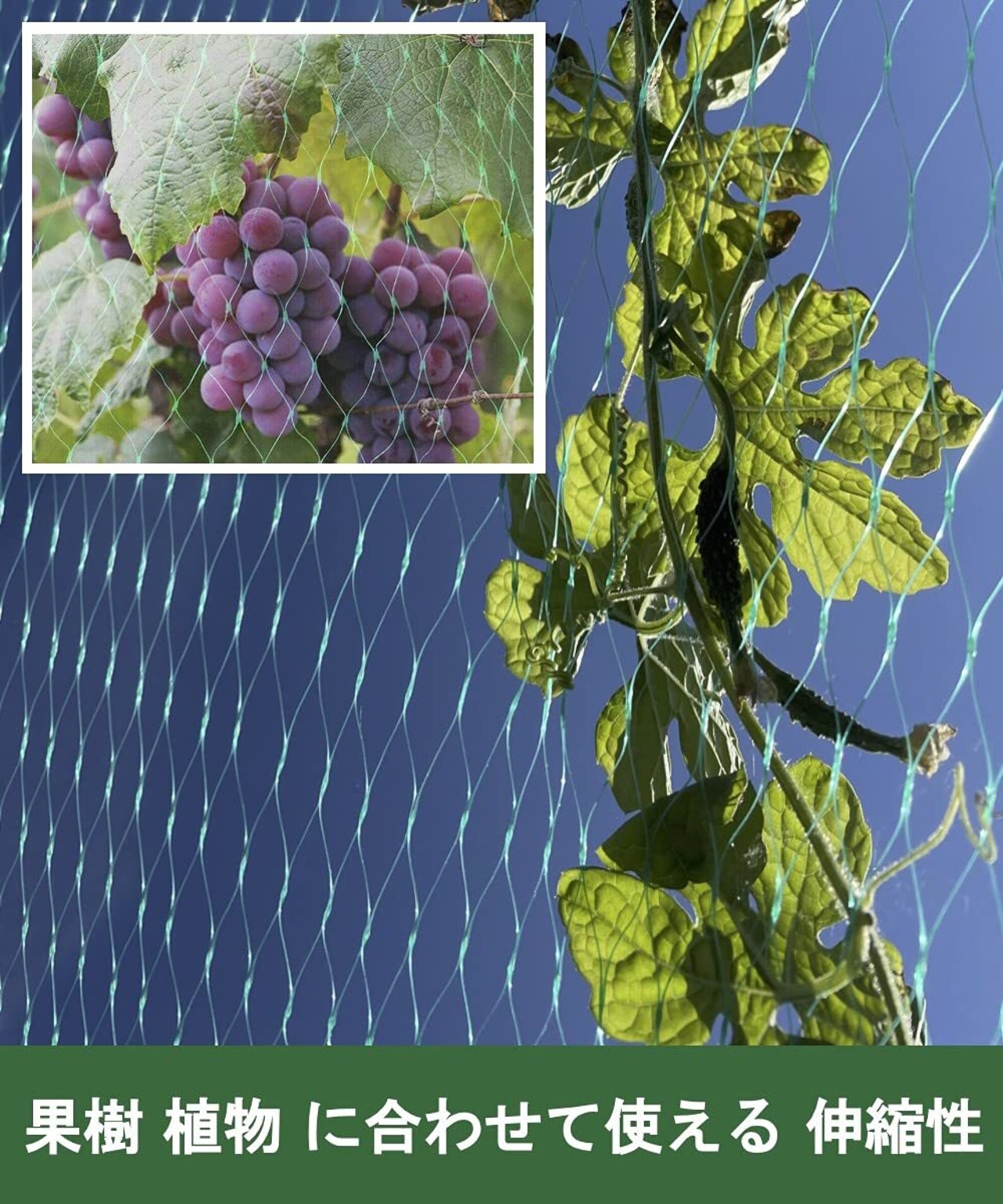 ASPALAND 鳥よけ 防鳥 園芸 ネット 農業 果樹 防鳥 網 カラスよけ 鳥害対策 伸縮性ある メッシュ グリーン (幅4m×長さ10m)