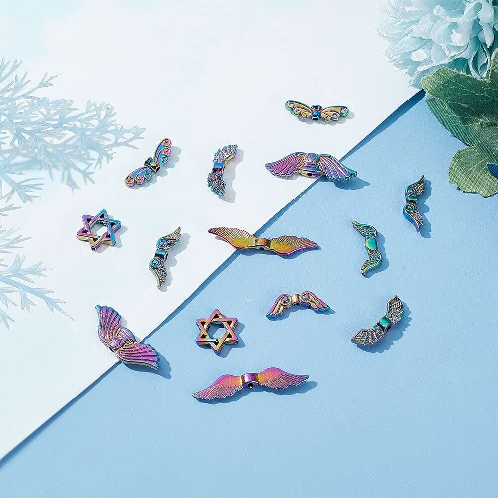 エンジェルウィングチャーム:このセットには32個の虹色ウィングビーズが含まれており、あなたのあらゆるニーズに合わせて、幅広い選択肢を提供する8つのスタイルがあります。