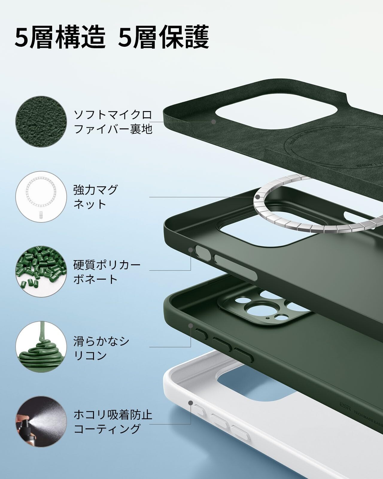 【極薄!Cloudシリーズ】ESR iPhone 16 Pro ケース MagSafe付き マグネット充電対応 滑らか・スリムなシリコンケース iphone16 pro ケース 耐衝撃 フルスクリーン&カメラ保護 傷防止 いPhone16Pro ケース アイフォン 16 プロ対応 ソフトマイクロファイバーライニング Cloudシリーズ グリーン