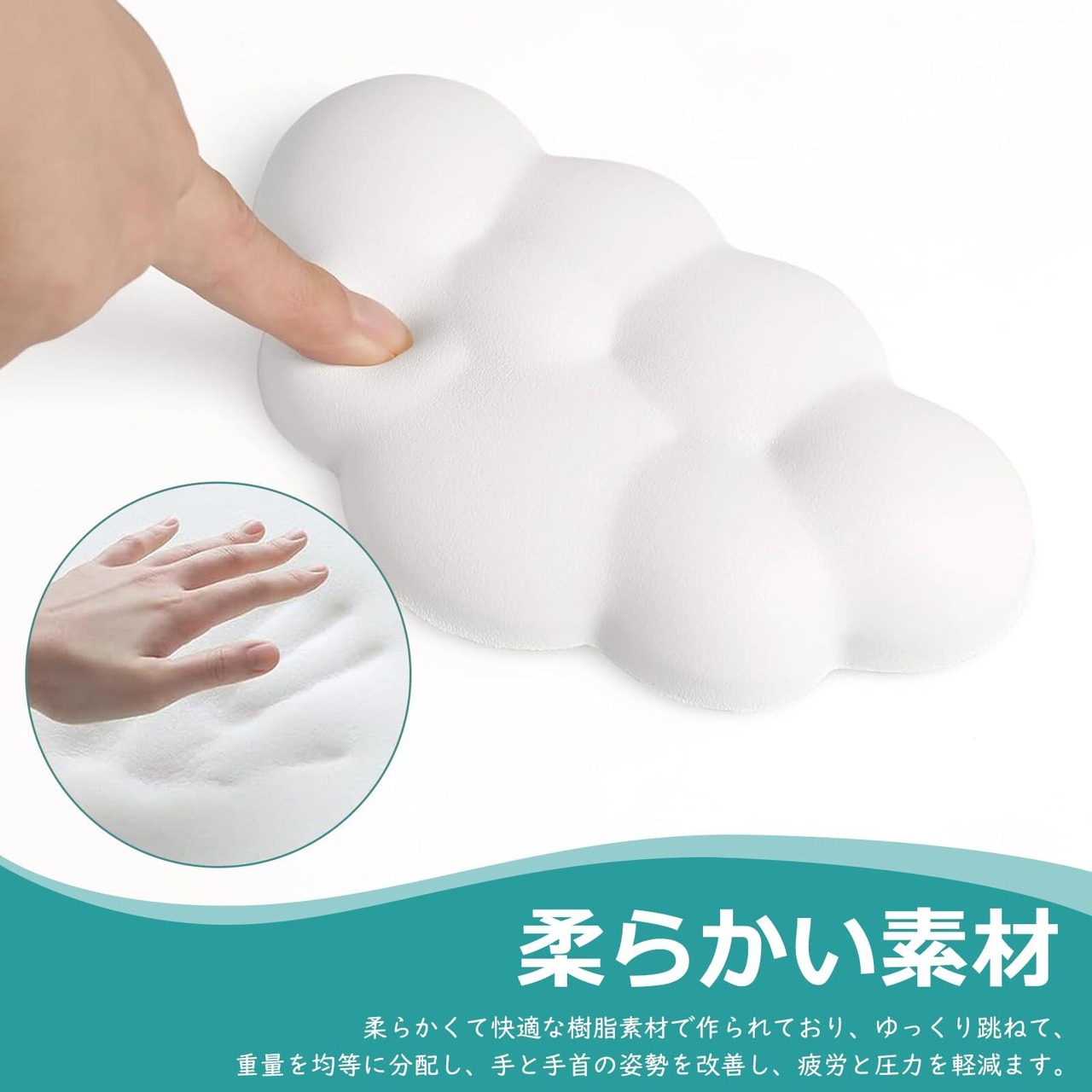 Anboli マウス手首クッション マウスリストレスト キーボード クッション雲状手首 パームレスト 人間工学デザイン 低反発 柔らかいパッド 疲労を軽減 手首置き 滑り止め コンピュータ ラップトップ オフィスワーク PCゲーム 1個(ホワイト)