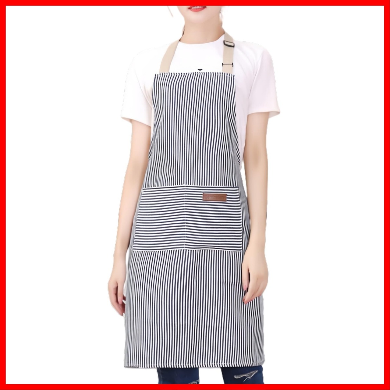 【外観】エプロンのデザインはとてもおしゃれで、細いピンストライプで、簡潔で美しく見えます。