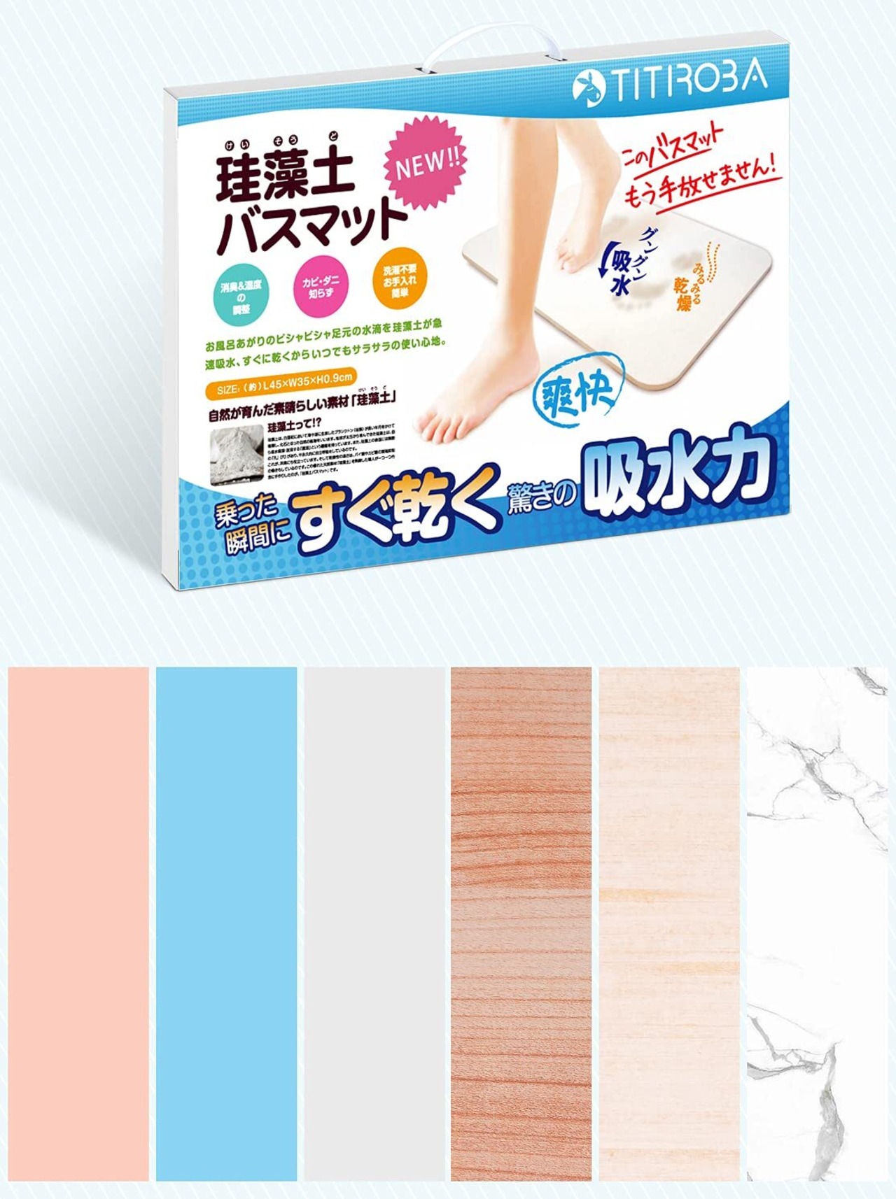珪藻土バスマットは、「呼吸する土」とも呼ばれる天然素材を採用しており、吸湿・放湿を行う「調湿」性能がある。水分を自動的に吸ったり出したりするので、清潔感と爽快感が得らえる。