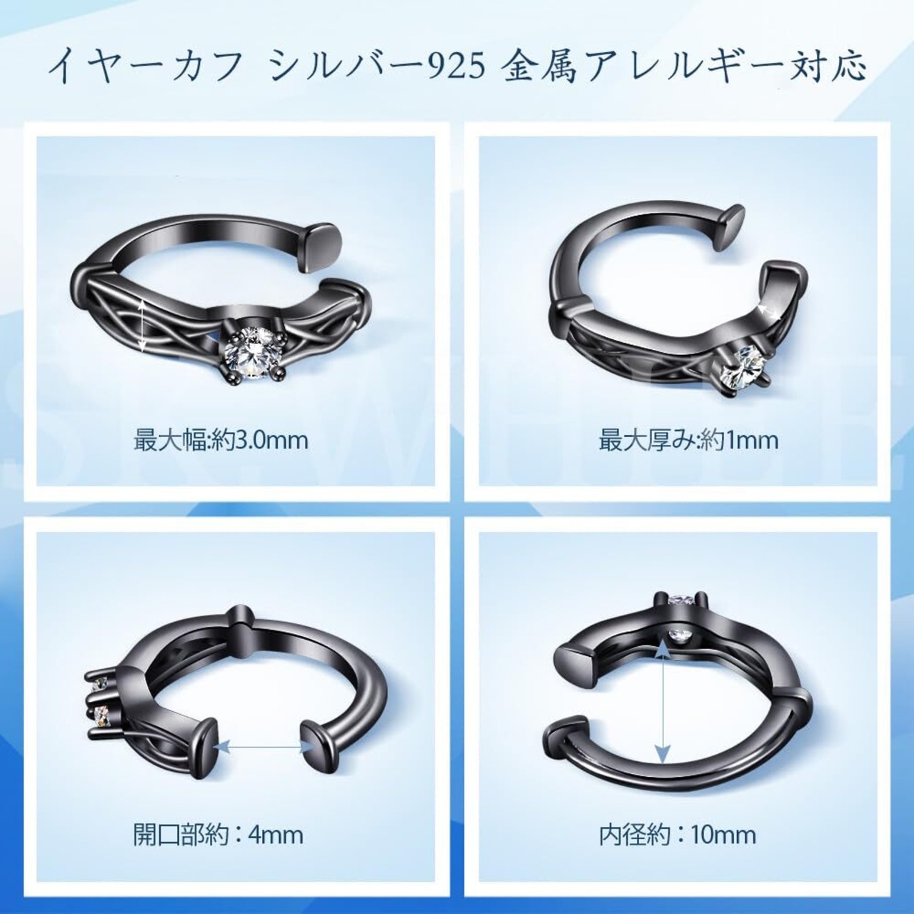 SK.Whiee イヤーカフ レディース メンズ 片耳 黑 最高級ジルコニア 「恋の訪れ」 シルバー925 金属アレルギー対応 4月誕生石 ノンホールピアス アクセサリー 透かし 唐草 大人 可愛い 彼女 彼氏 カップル プレゼント 人気 カップル バレンタインデー 誕生日 記念日 クリスマス
