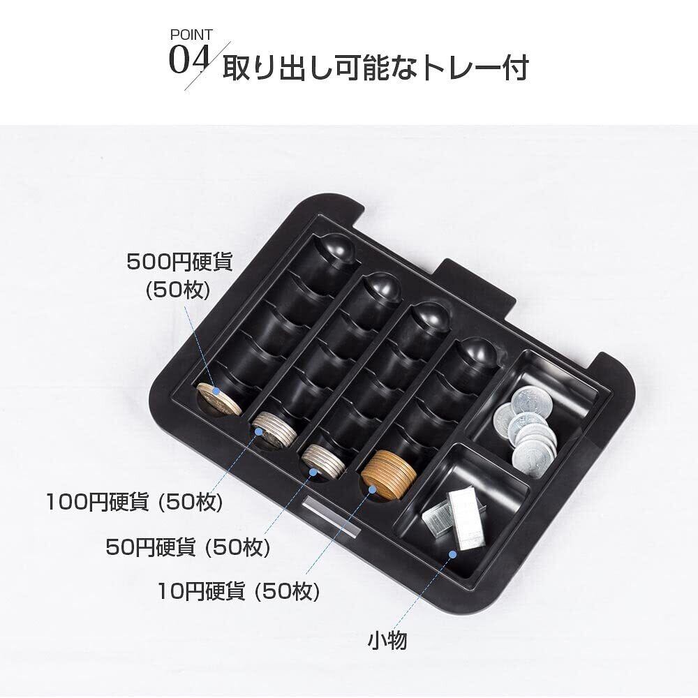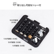 上部のトレイにはコインを収納でき、下段はメモなどの収納に最適です。