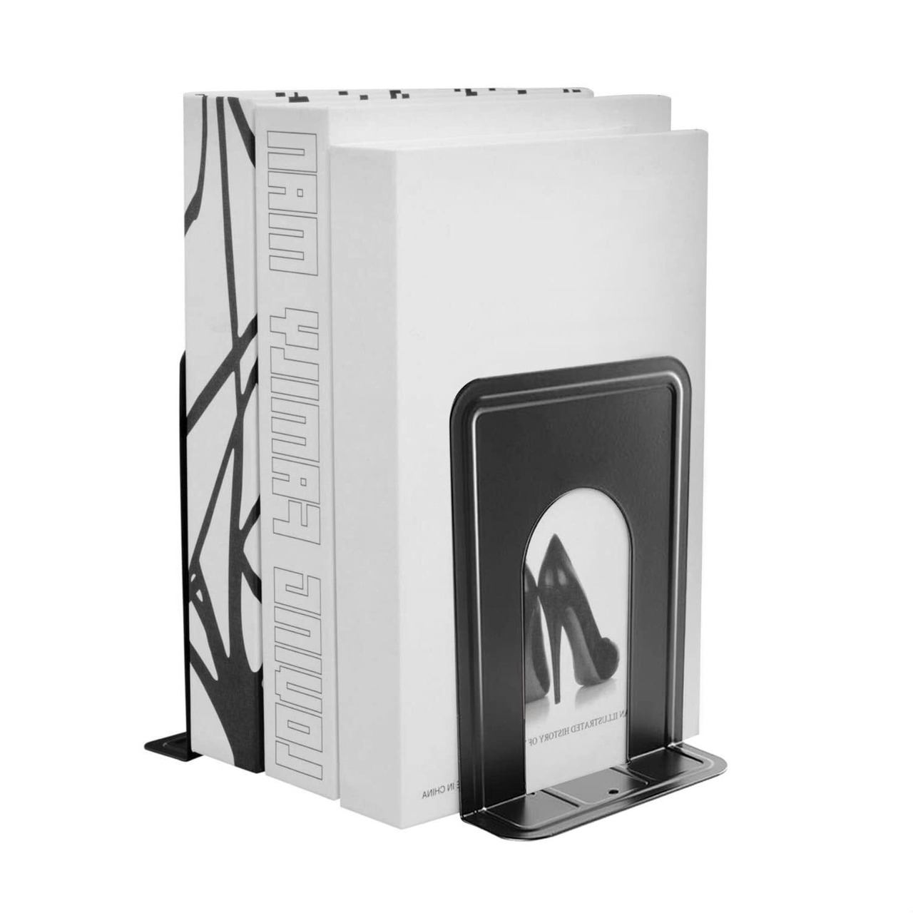 【優しいデザイン】L型のデザインを採用して後ろに端は突き出なく、スペースを最大に活用できます。底部に四つの滑り止めマットがついていますから、ブックエンドは倒れにくいので、本や雑誌などを綺麗に収納できます。本たての角には弧状に設計されており、指や本に優しいので、ご安心利用してください。