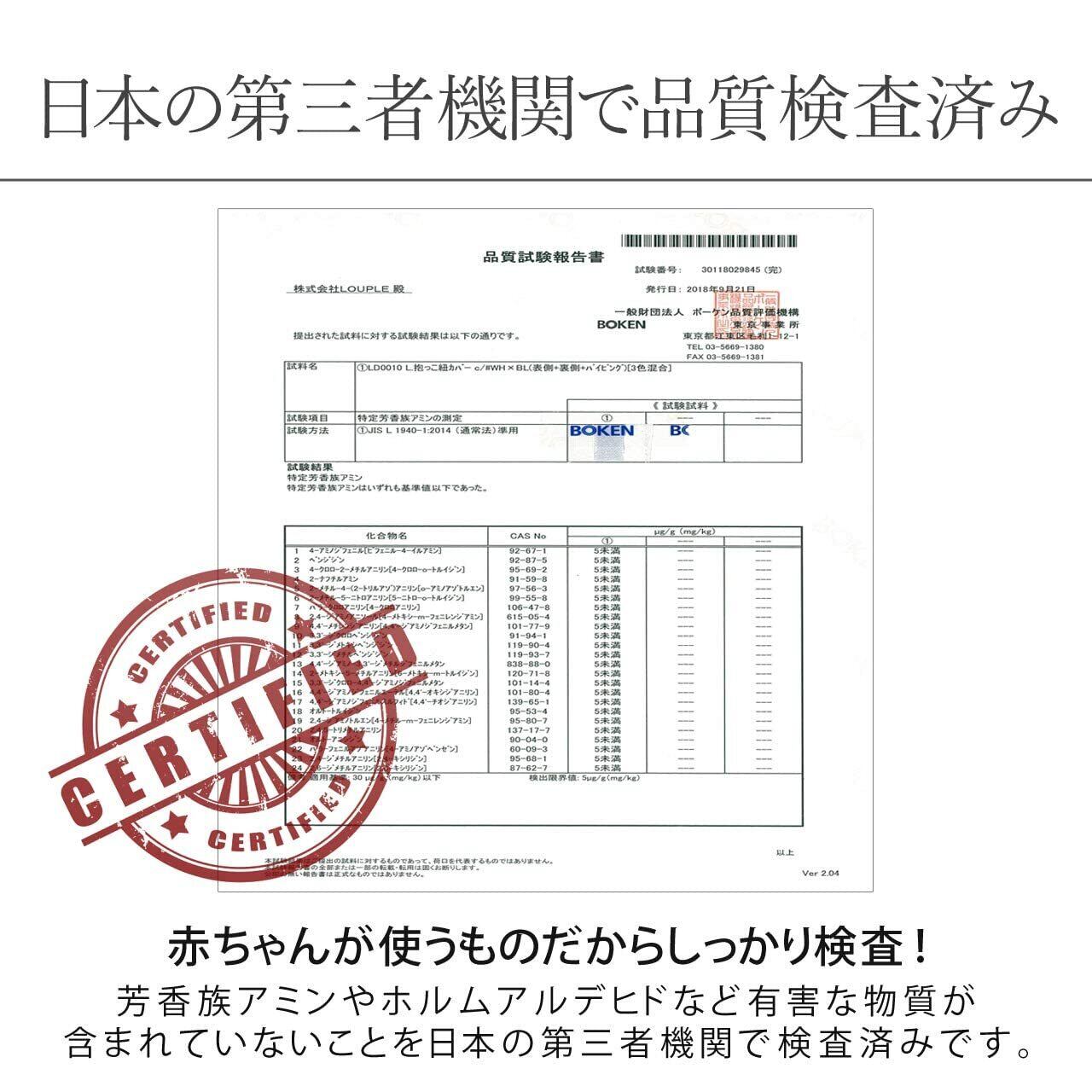 【6重ガーゼ生地の安全素材️】表・裏 綿100%の6重ガーゼ素材です。ガーゼ素材は敏感肌の赤ちゃんに最適な素材の一つで、赤ちゃんの柔らかい肌✨をしっかりと守ってくれます。6重構造になっているため、程よい厚みがあり、吸水性も優れています。肌触りも柔らかくい使用感で毛玉になりにくいです。洗濯の際にゴミも付きにくいので、忙しいママの仕事を増やしません。【日本の第三者機関で安全性チェック️】大切な赤ちゃんに使用するものですので、万一芳香族アミンやホルムアルデヒドなど有害な物質が含まれていたら大変です!有害物質が含まれていないことを日本の第三者機関で検査しております。