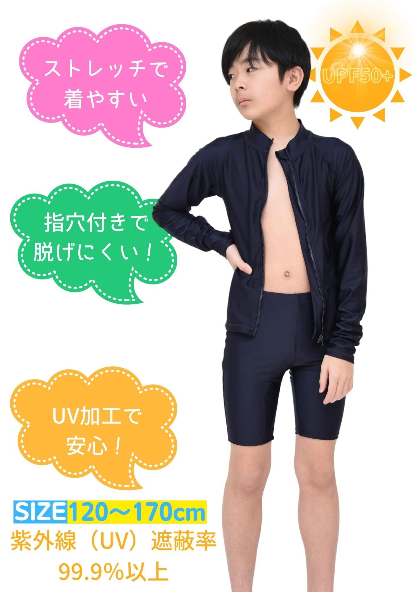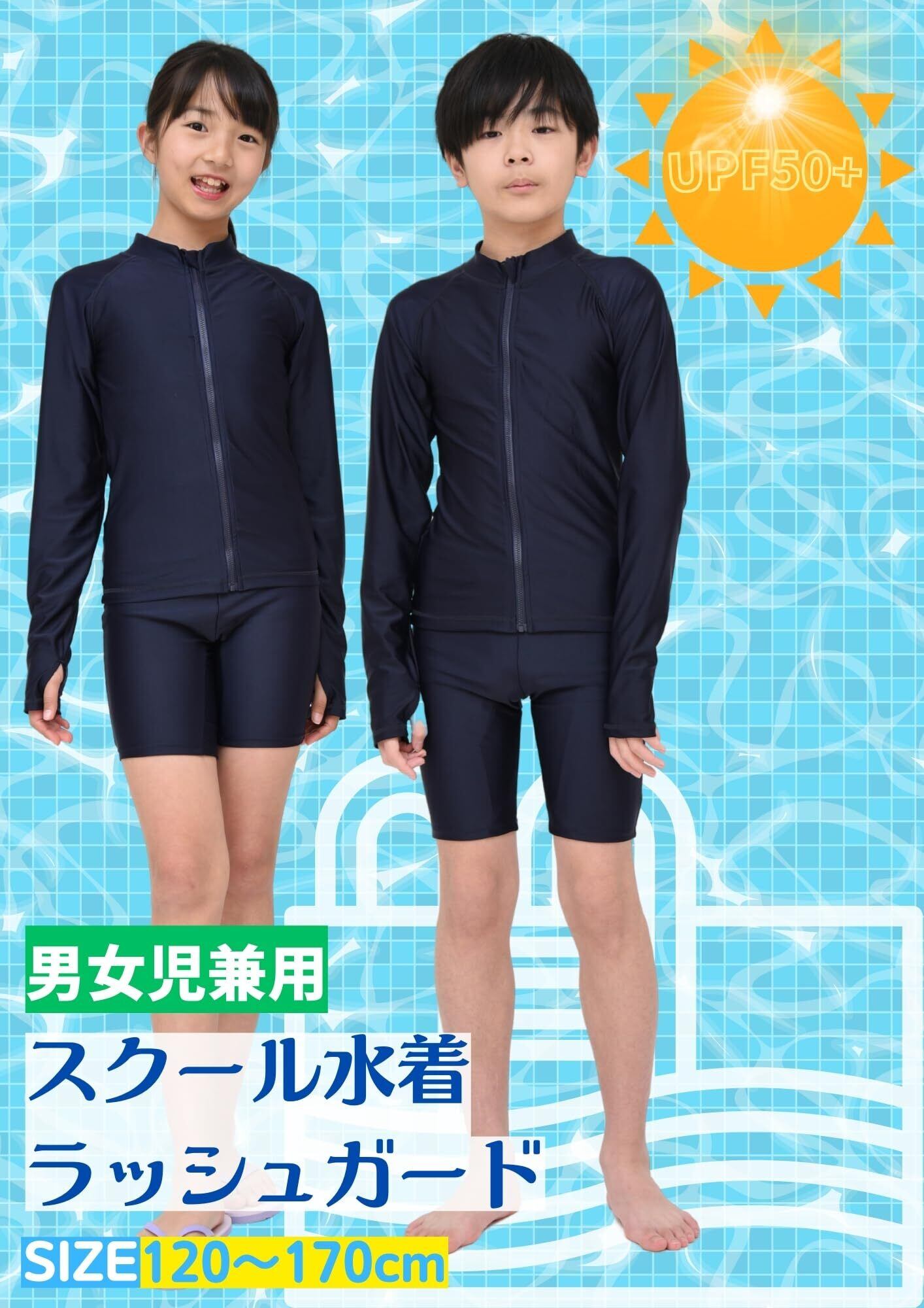 [SCHOOL HERO] ラッシュガード スクール水着 女の子 男の子 ジップアップ 前開き UVカット UPF50+ 120 130 140 150 160 170 小学生 小学校 学校 水着 プール スイミング 競泳 (120cm)