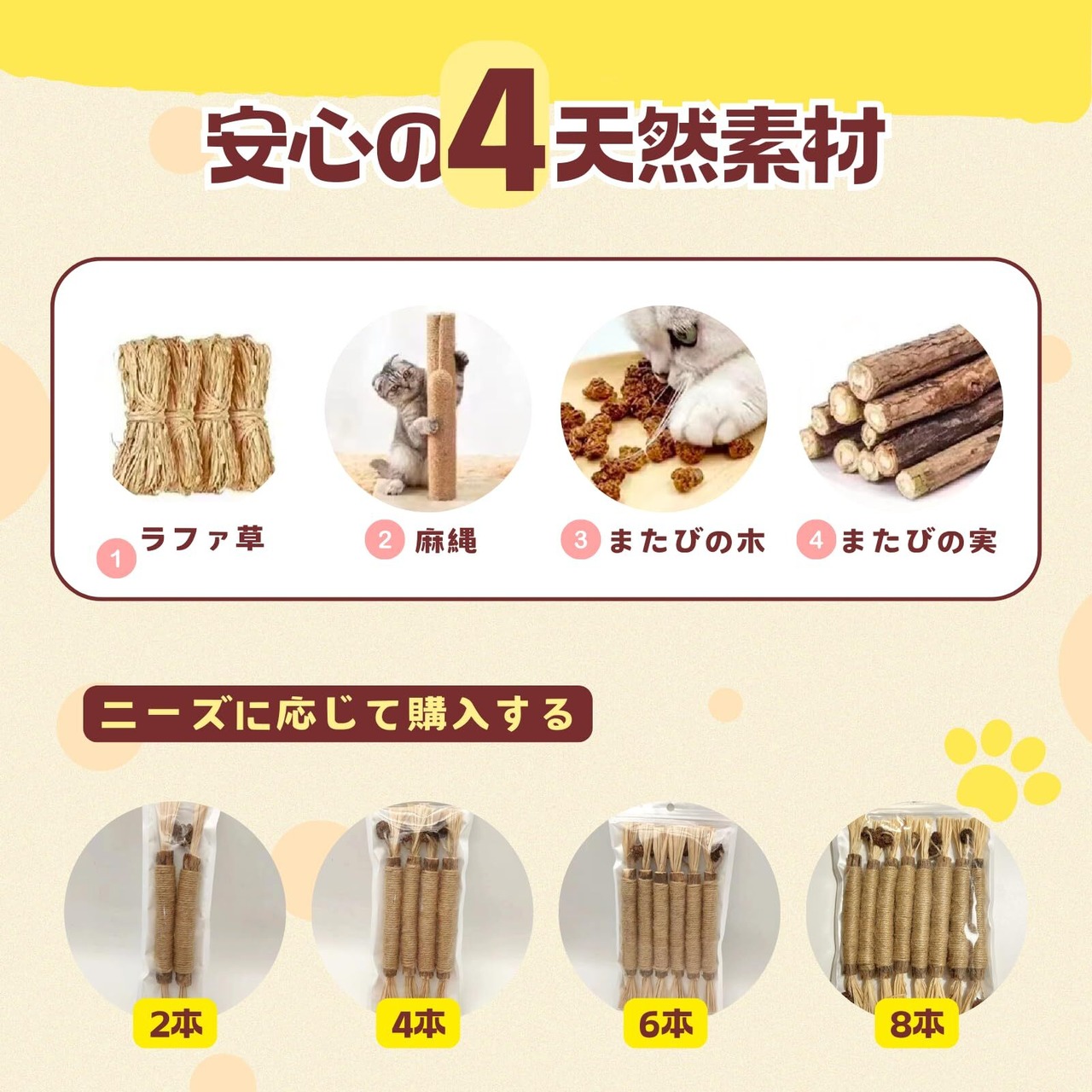 GlamDromen 猫 おもちゃ 猫 噛むおもちゃ 6本入り 歯磨き 猫用品 またたび 歯ぎしり棒 噛むスティック 天然木 麻縄 天然安全 歯のクリーニング 運動不足解消 ストレス解消 肥満解消