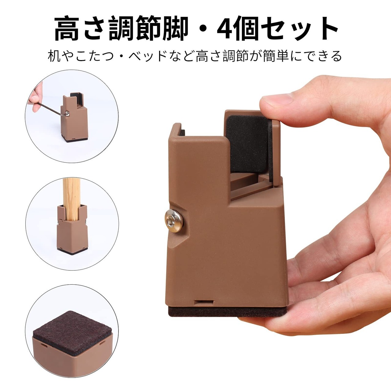 Ezprotekt テーブル 脚 継ぎ足し こたつ 継ぎ足 机 高さ調整 4個セット 50mm高さを上げる 幅を調節できる・22mm~40mm 丸/角脚兼用 (ブラウン)