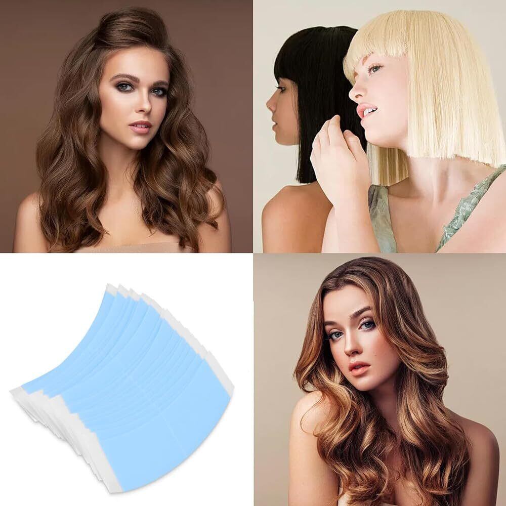 かつら両面テープ 50枚セット ヘアエクステンションテープ ウィッグ用両面テープ ウィッグ粘着テープ 強力両面テープ かつら用 交換用粘着テープ PU素材製 ウォータープルーフで長持ち 強粘着 隠し可能 透明 かつら接着に適したヘアエクステンションテープ 美容ツール