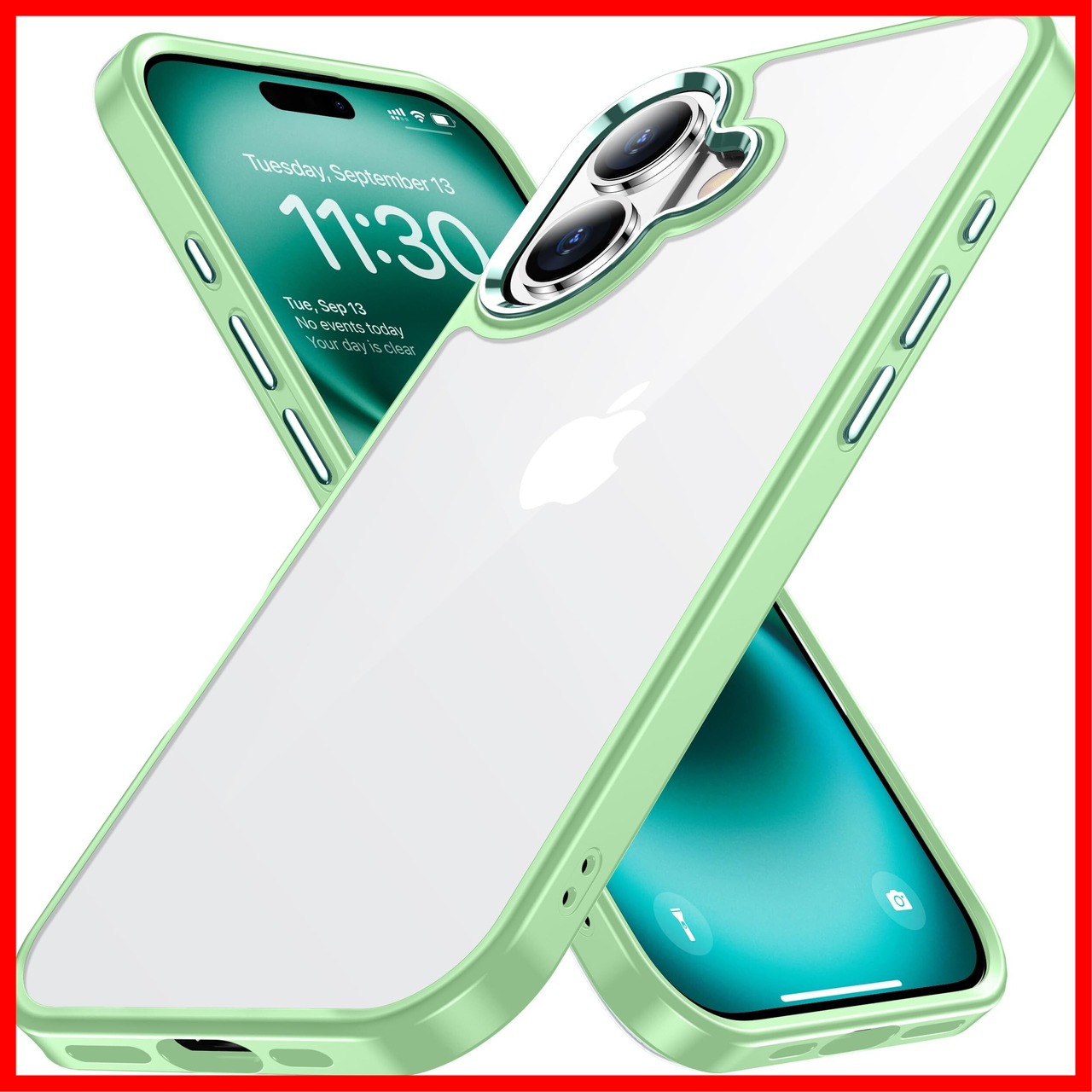 iPhone 16 ケース グリーン 耐衝撃 黄ばみ防止 アイフォン16ケース 米軍MIL規格 ワイヤレス充電対応 SGS認証 指紋防止 滑り止め 薄型 耐摩耗性 あいふぉん16 あいふぉん16 カバー スマホケース 6.1インチ 透明 JUSTCOOL