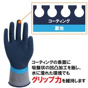 特殊すべり止め加工で、濡れた環境でも優れたグリップ力を発揮します。
