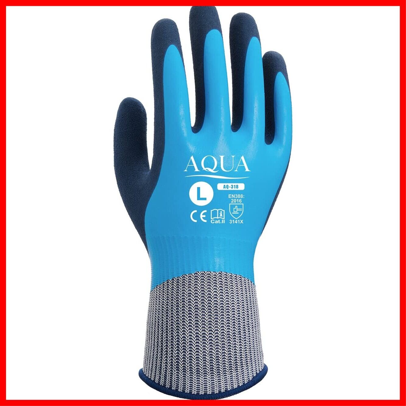 ウィード(Weed) 洗浄・清掃作業 作業用手袋 防水 グリップ 天然ゴム Lサイズ AQUA AQ-318 (1双入り) ブルー