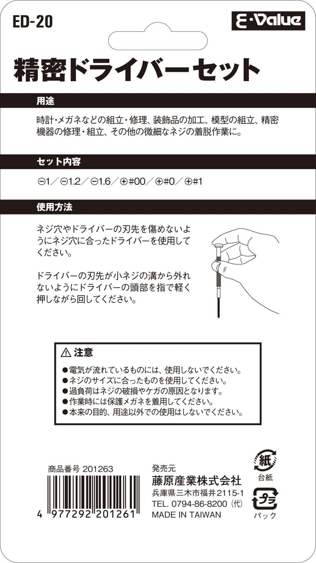 イーバリュー(E-Value) 精密ドライバーセット 6本組 -1・-1.2・-1.6・+00・+1mm ED-20