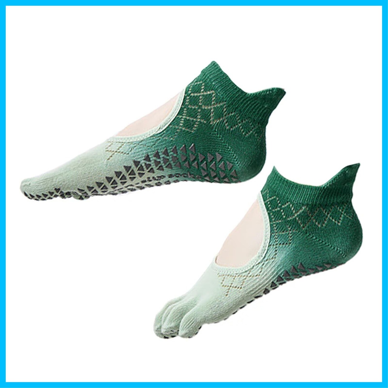 【滑り止め加工】靴下の底部には3D立体シリコン滑り止めが施されています。これにより、地面とのグリップ力が向上し、運動中の安定性が高まります。難しいポーズやバランスを取る際にも、しっかりとサポートします。