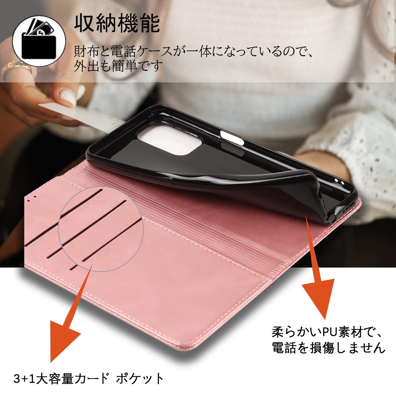 【高級皮革】高品質のPUと柔軟なTPUカバーと組み合わせ、軽量で耐衝撃性に優れ、変形しにくくまた、取り外しが簡単で、スマホ本体への損傷の心配ありません。