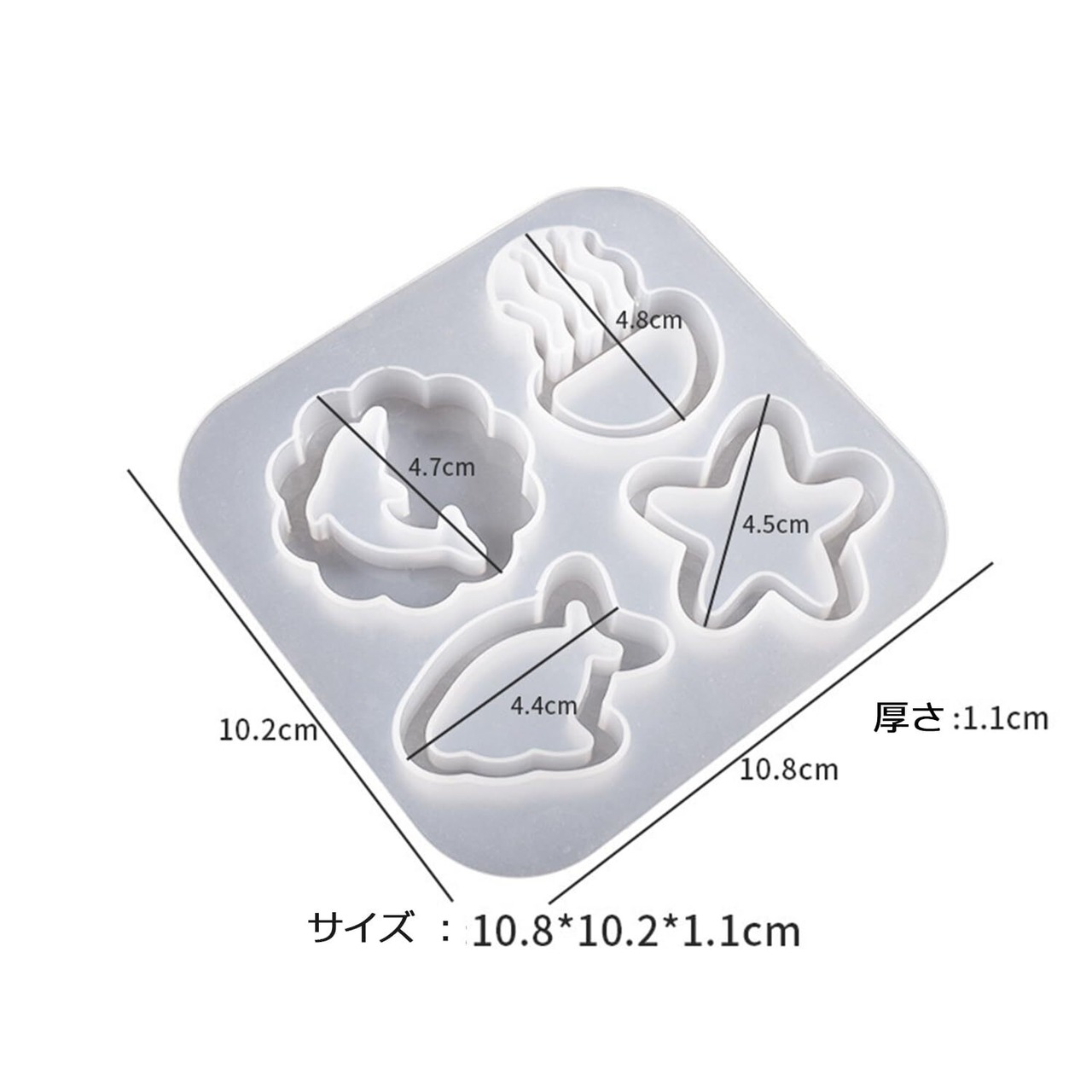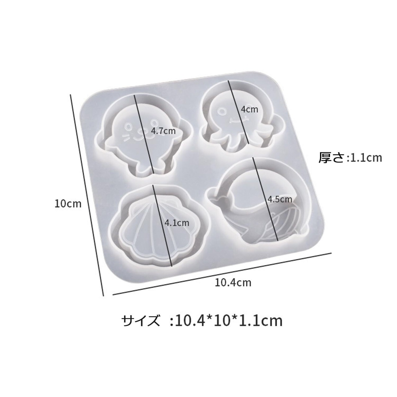 【セット内容】かわいいシェイカー型のセットです。 クラゲ、貝殻、ヒトデ、イルカ、タコなど8種類のシリコンモールド2個。 (完成品は付属しません、シリコンモールドのみです)
