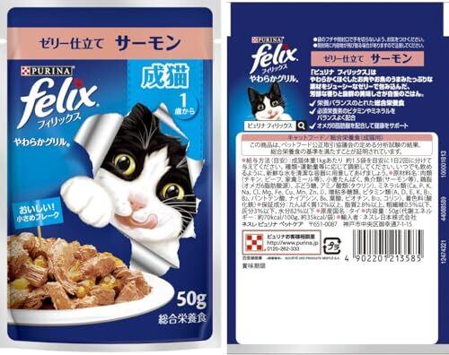 フィリックス やわらかグリル 成猫 お魚バラエティ(ツナ・サーモン・あじ) 50gx48袋入り(12袋x4箱)
