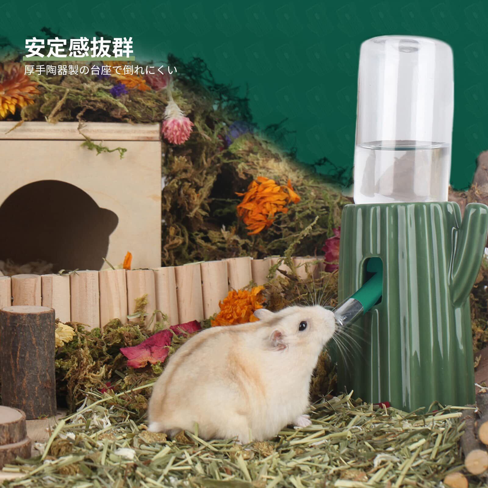 【おしゃれサボテン型】自然の要素を取り入れ、給水器をサボテンの型にデザインした。給水器を単調にしなくで、素敵なインテリアにするなら、ハムスターも喜んでくれそうです。