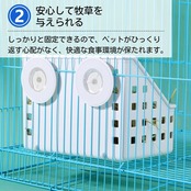 【安定した固定でストレスフリー】ケージにしっかり固定できるので、食事中に動いたり、牧草がこぼれることはありません。無駄なく牧草を与えることができるうえ、清潔な状態を保つことができます。