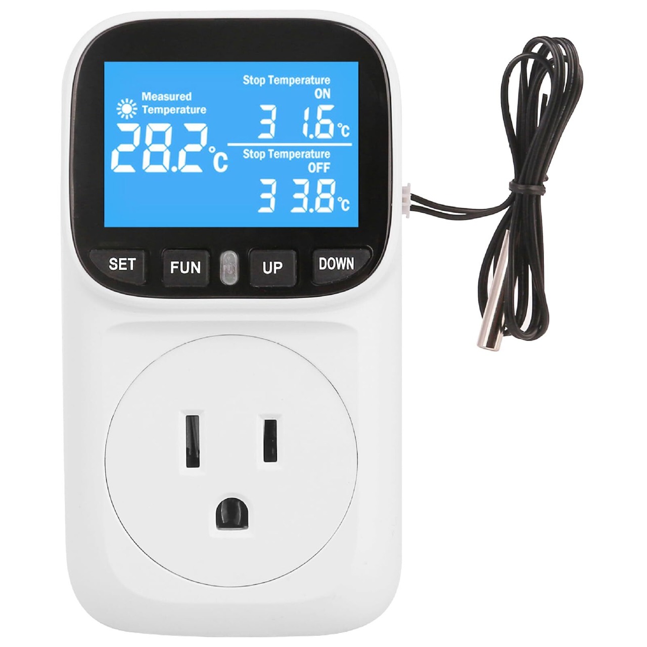 DiyStudio 7つの設定モード 1800W サーモスタット 温度制御ソケット爬虫類 夏の水槽の水温調節 ファン 水槽 サーモスタット 熱帯魚 ヒーター 水槽ヒーターの使用 暖房冷却制御 温度補正 タイマーモード(-40~120℃) 青いバックライト・スクリーン