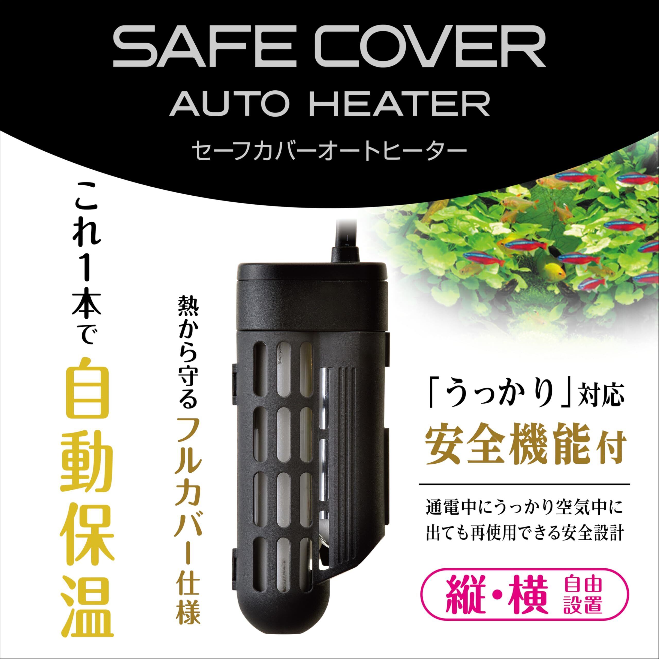 【安全カバー付き】難燃性樹脂を使用したヒーターカバーがついているので、人にも、魚にも安全です。