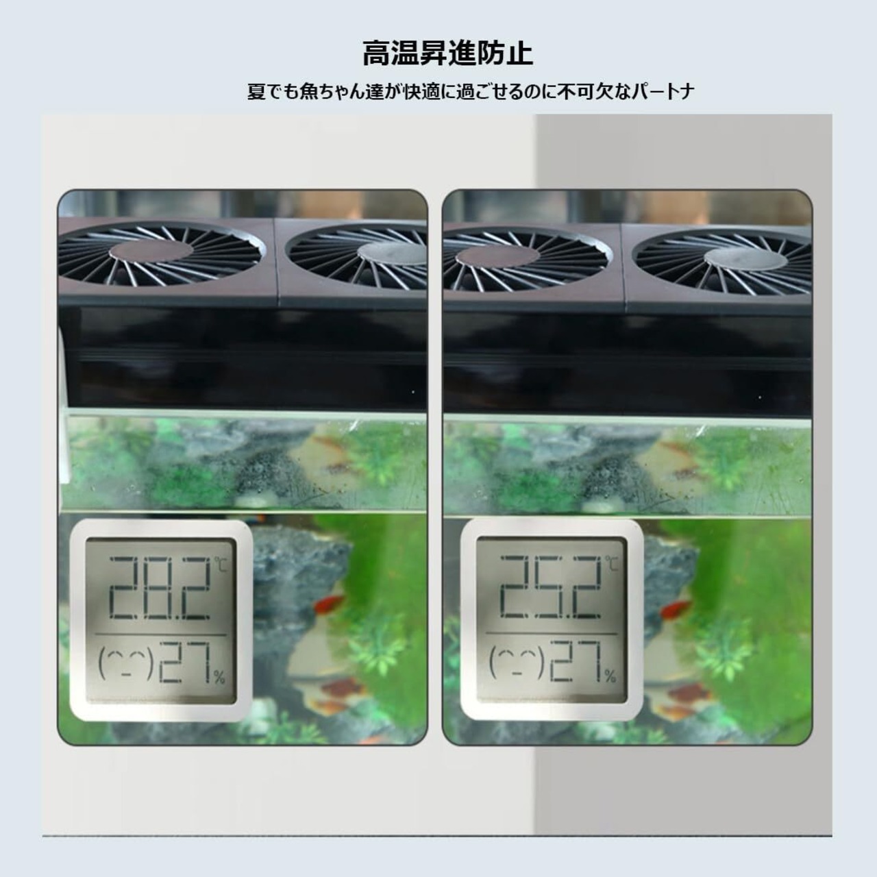 [静音な水槽 クーラー ファン]静音設計を採用しており、冷却ファンが作動する際は、ちっともお邪魔にならないレベルで、ご安心して使用できます。